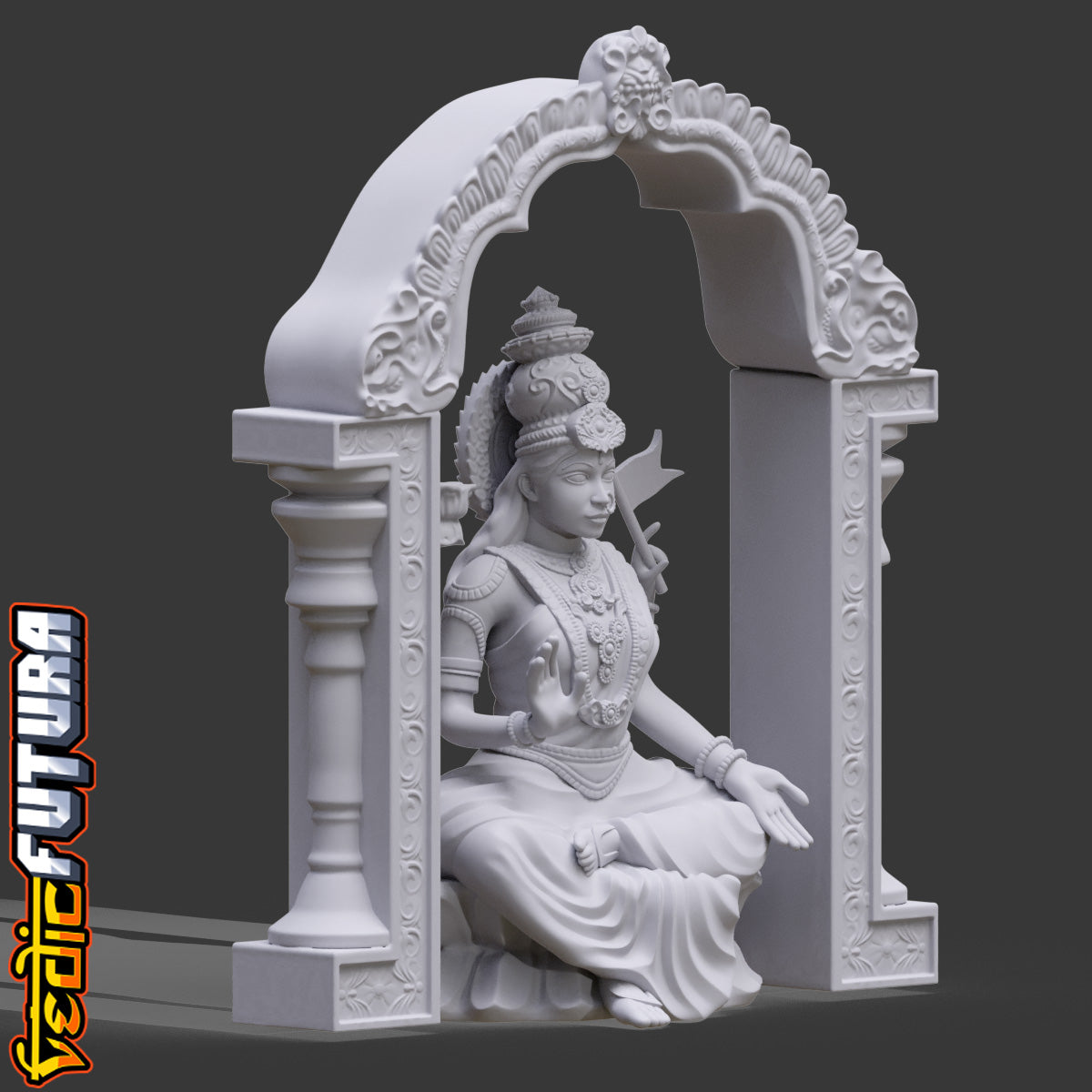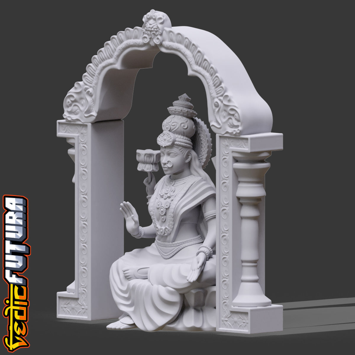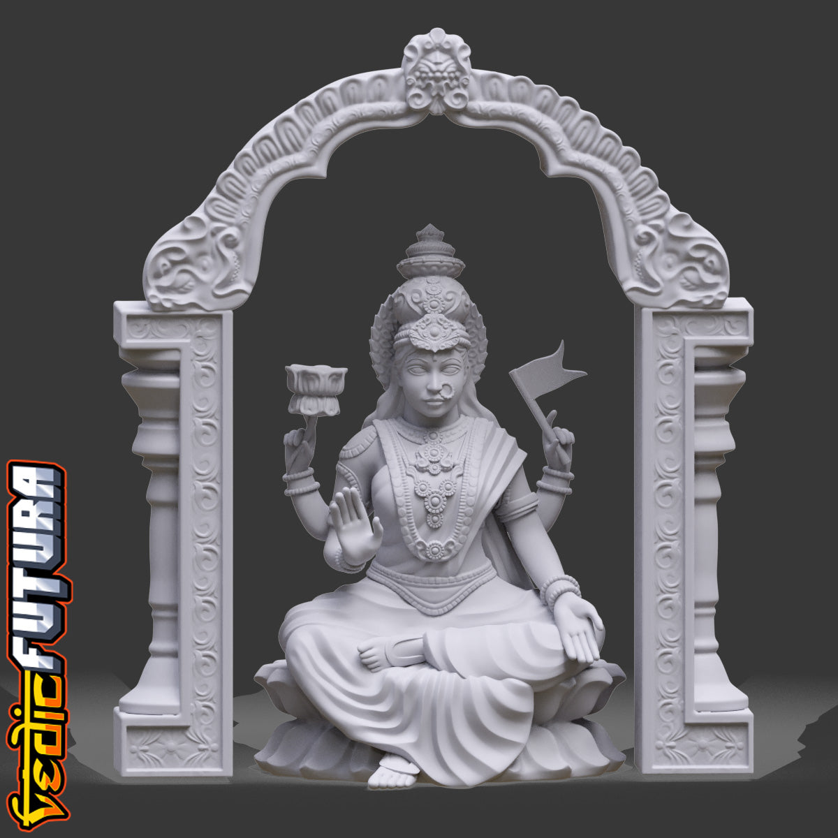 Sculpture represents Adi Lakshmi, the first aspect in the sacred Ashta Lakshmi set, embodying the primordial form of the goddess. The name derives from Adi (first or original) and Lakshmi (goal, aim), marking her as the eternal source who grants not just material prosperity but also spiritual liberation. She is venerated as Moksha Pradayani, the bestower of release from the cycle of birth and death.