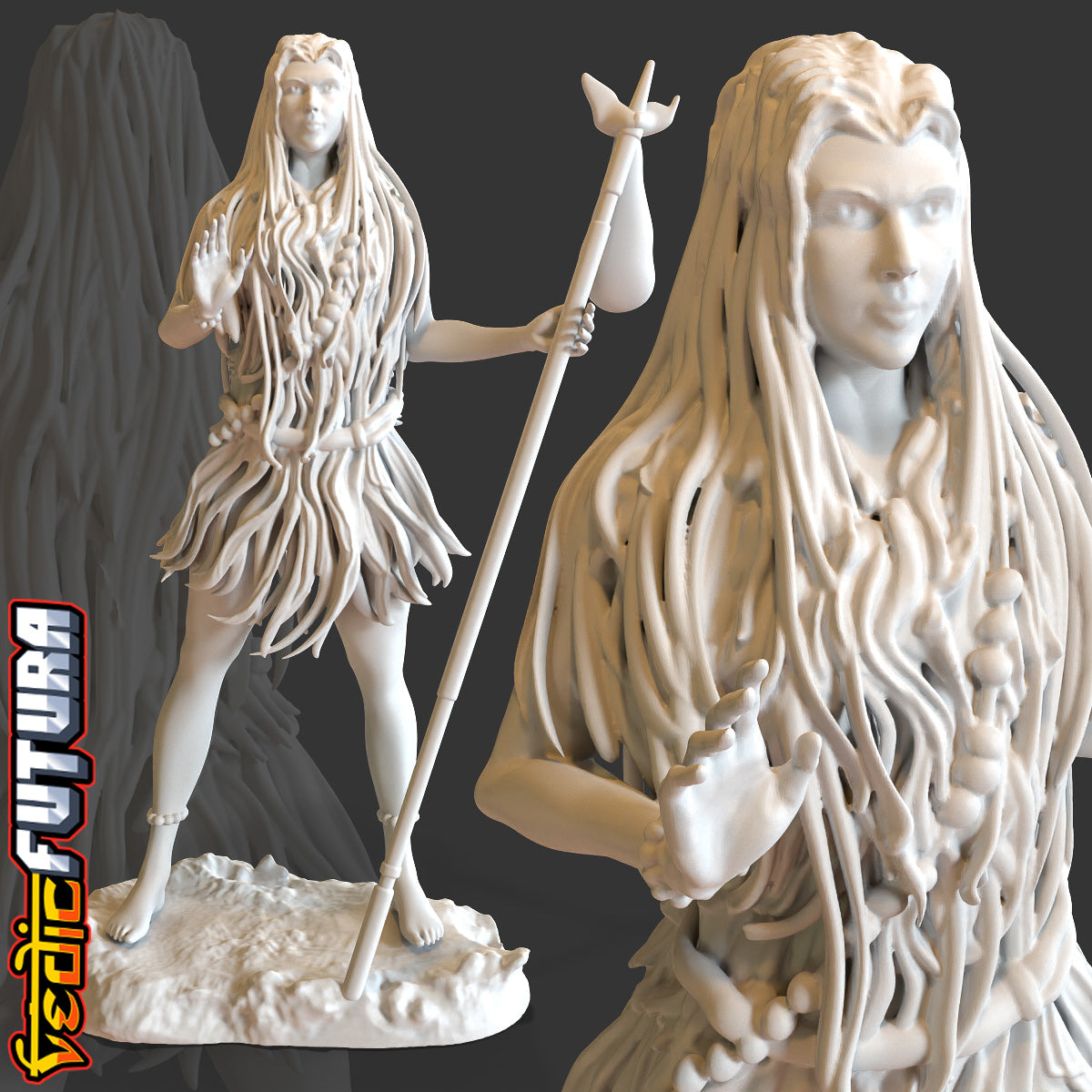 Mahadevi is said to have refused to wear any clothing—a common practice among male ascetics, but shocking for a woman. Legend has it that due to her true love and devotion with God her whole body was protected by hair.
