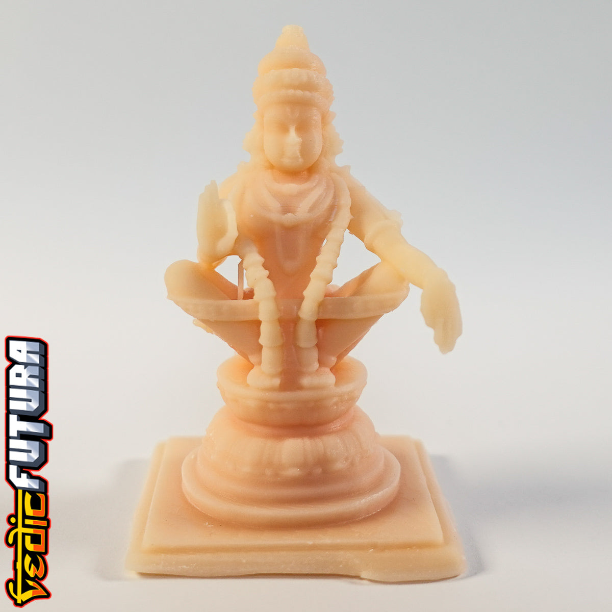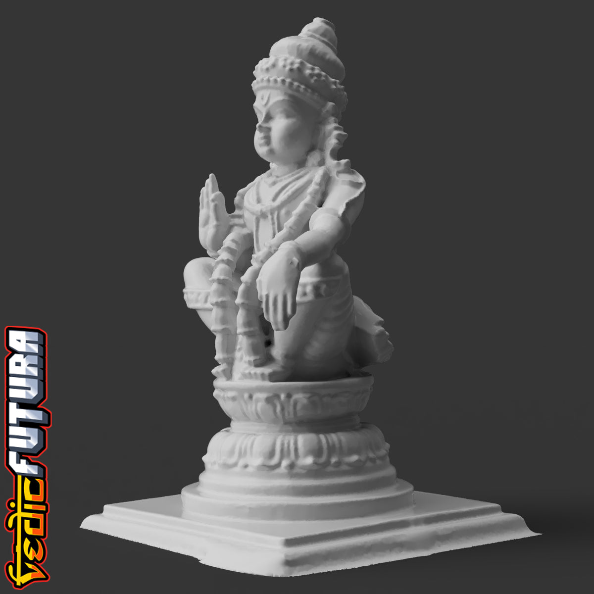 Ayyapa is considered to be the union of Mohini (Vishnu) and Shiva. Born of two men, to vanquish the Buffalo demoness Mahishi, who was un-defeatable by anyone born of a man and woman. He was raised by a childless royal couple Rajashekara pandiyan and Koperundevi, and grows up as a warrior yogi champion of ethical and dharmic living.