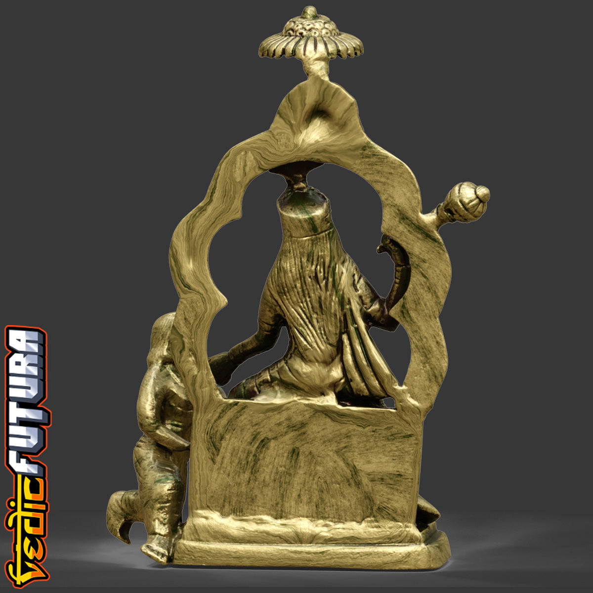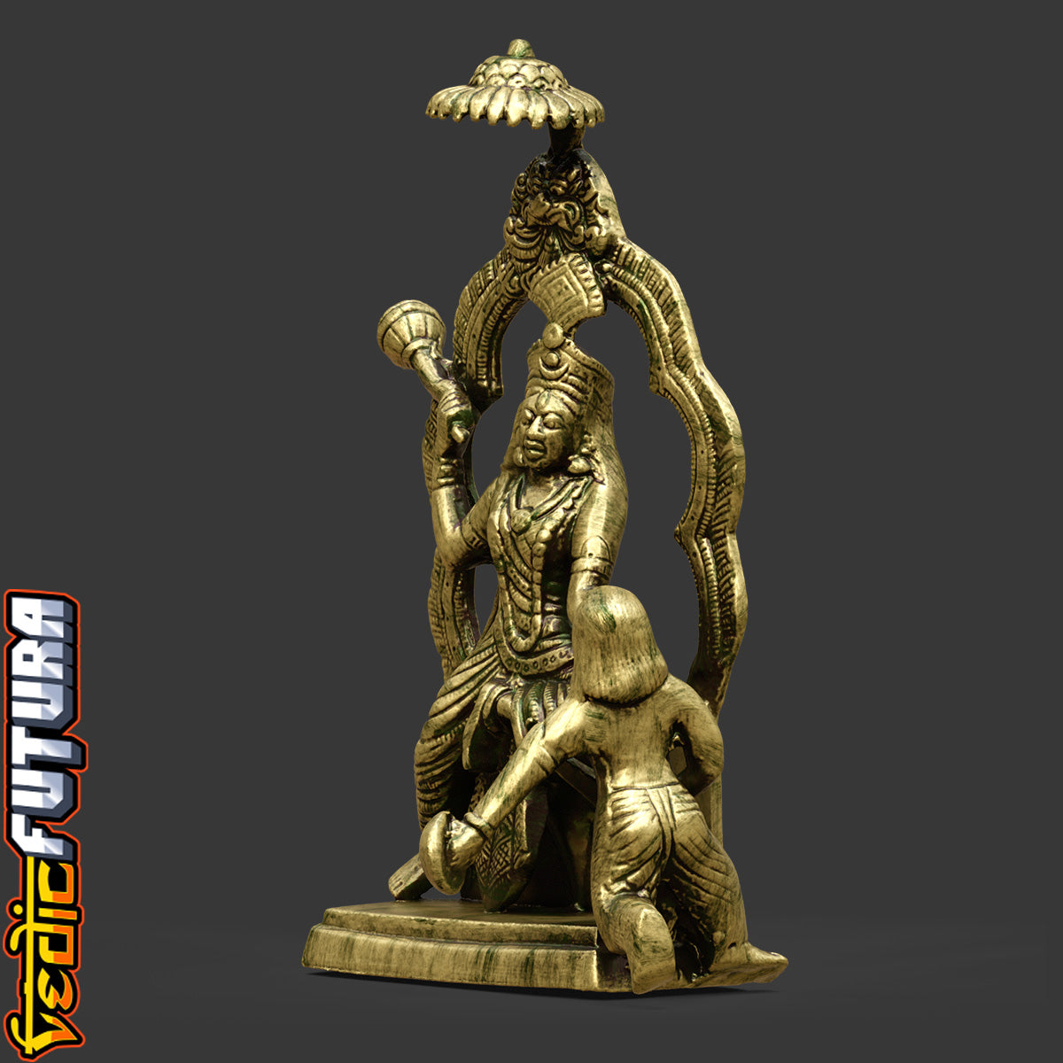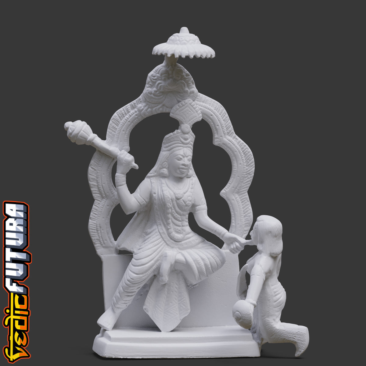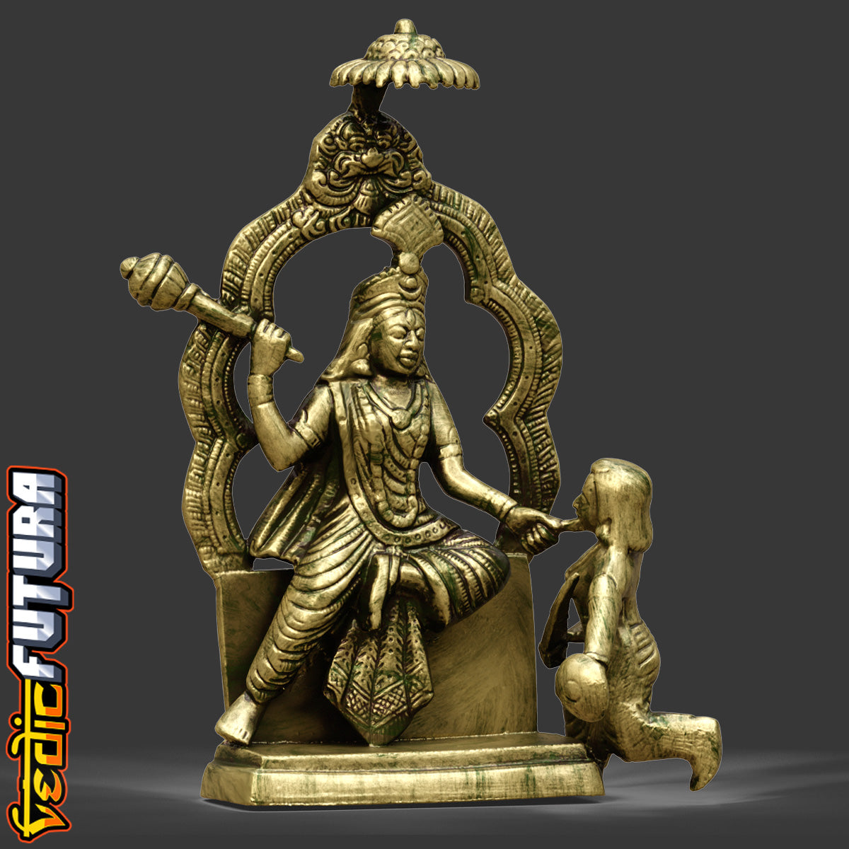 Seated under a decorative arch with divine composure, Bagalamukhi is invoked to silence negativity and halt enemies. The iconography—restraining the demon mid-action—captures her essence as the goddess who freezes chaos, a potent symbol of inner mastery and control.