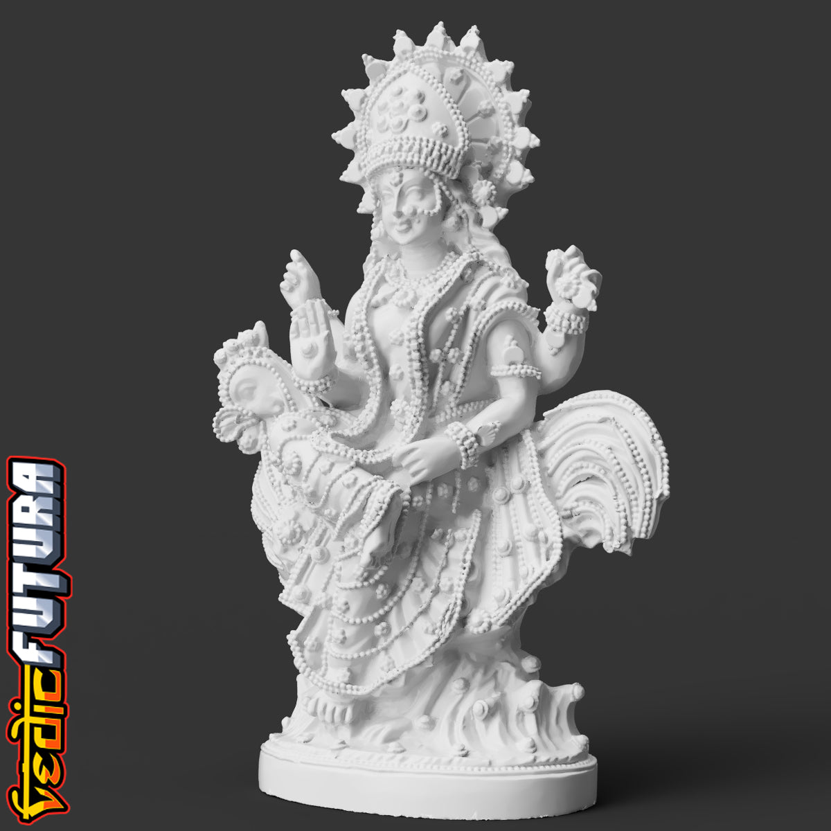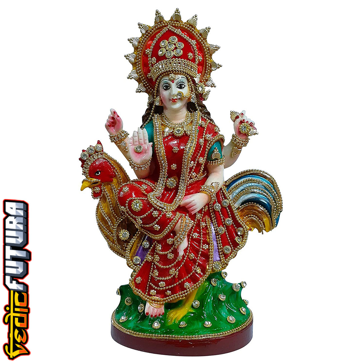 Bahuchara Devi is a Hindu goddess of chastity and fertility in her Maiden aspect, of the incarnation of the Hinglaj. She is a divine Hindu deity worshiped fervently by women who desire to conceive, or men who are unable to procreate. Bahuchara Devi is mainly worshiped by members of the transgender community known as ‘Hijras’. A rooster serves as a vehicle for the Goddess which symbolises innocence. She is depicted carrying a trident in one hand and a copy of the Hindu scripture in the other.