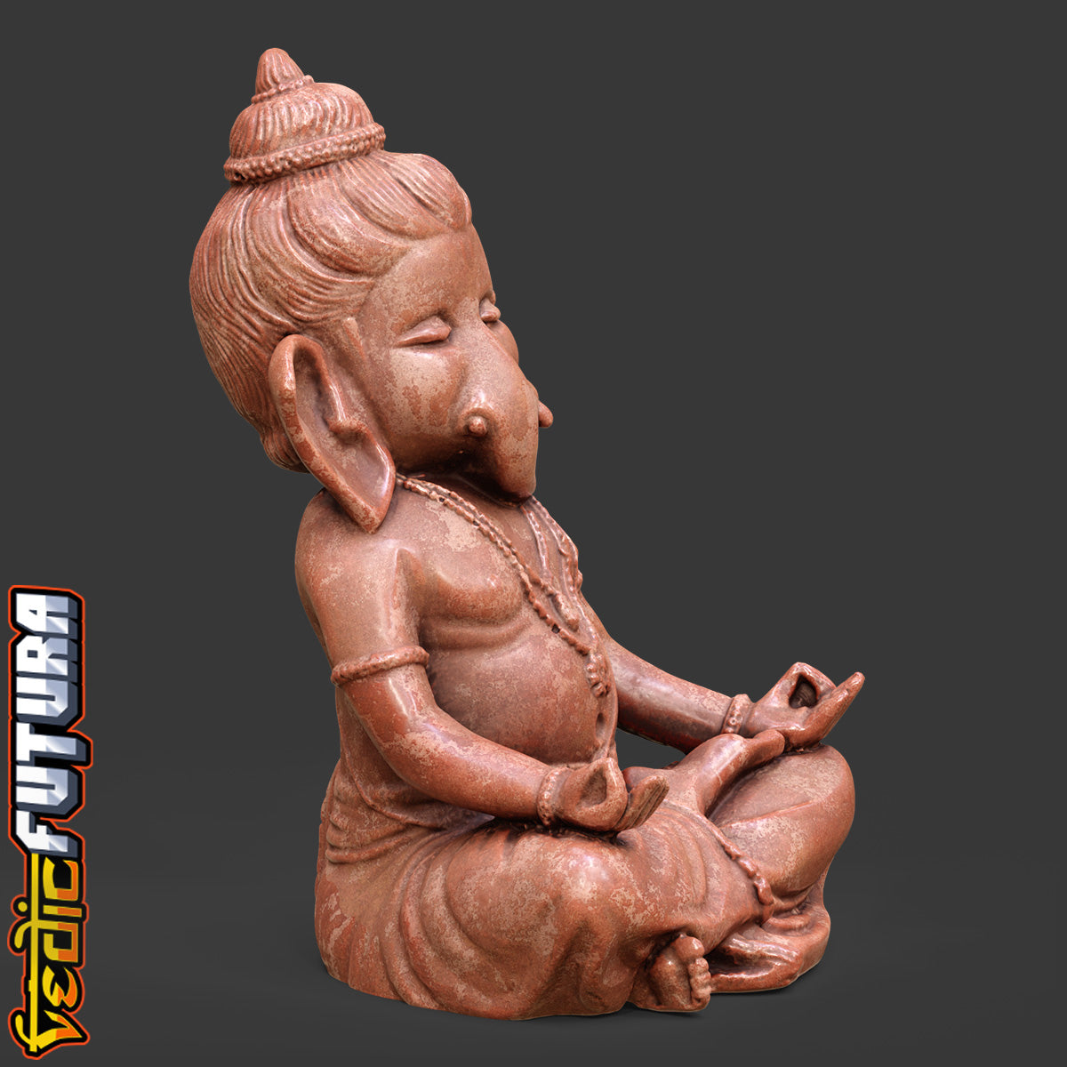 The topknot hairstyle, often seen in depictions of young sages, and the absence of usual attributes like the modaka or axe, emphasizes Ganesha’s inner stillness and ascetic wisdom. This sculpture highlights Ganesh not only as the remover of obstacles but also as a patron of discipline, concentration, and self-mastery.