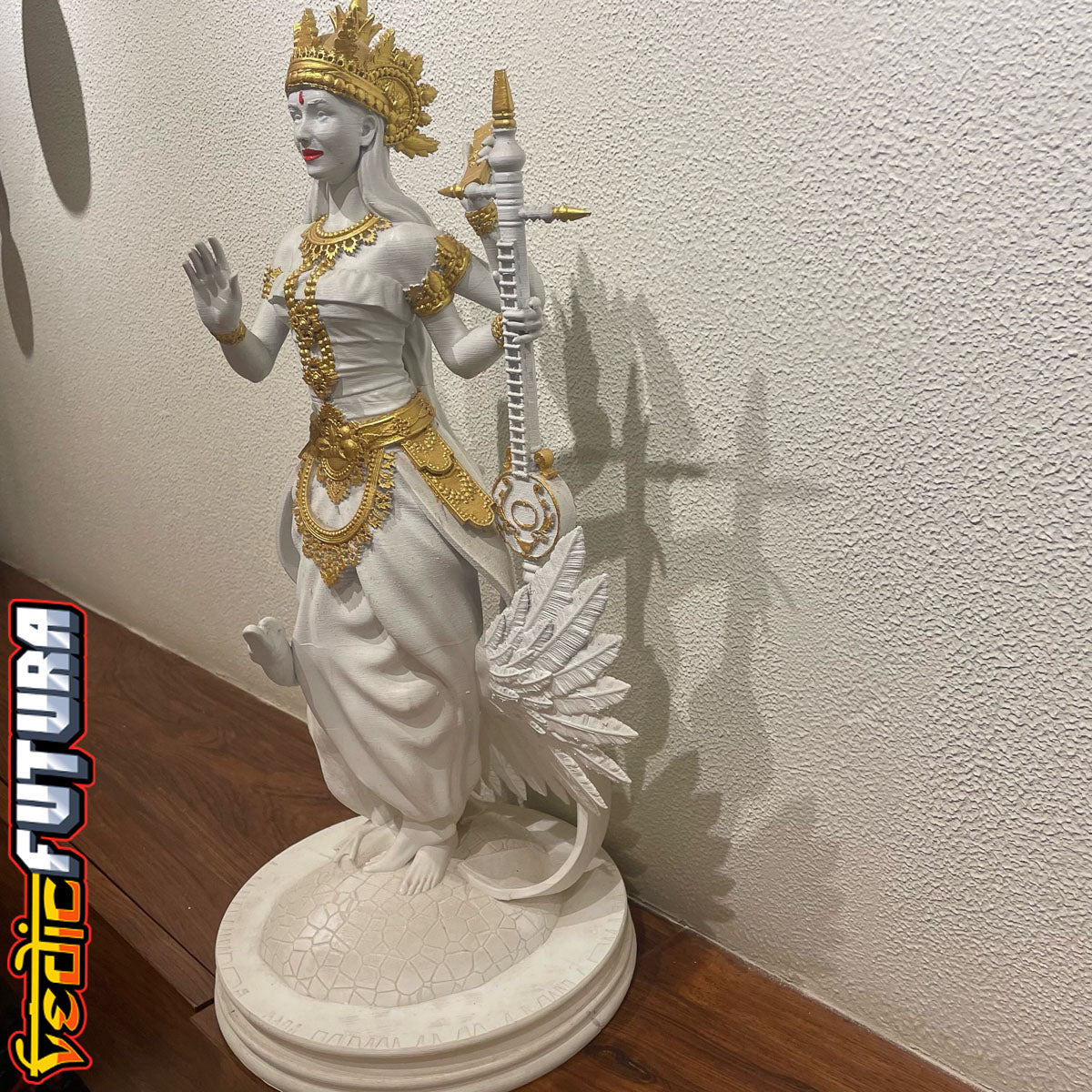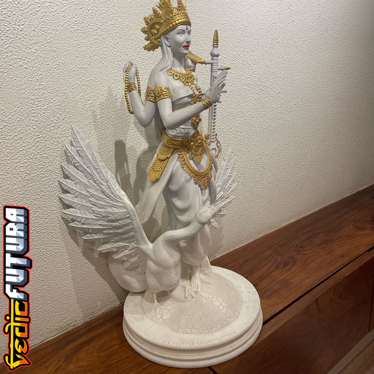 Saraswati is the Hindu goddess of knowledge, music, art, speech, wisdom, and learning. She is one of the tridevi, along with goddeses Lakshmi and Parvati.