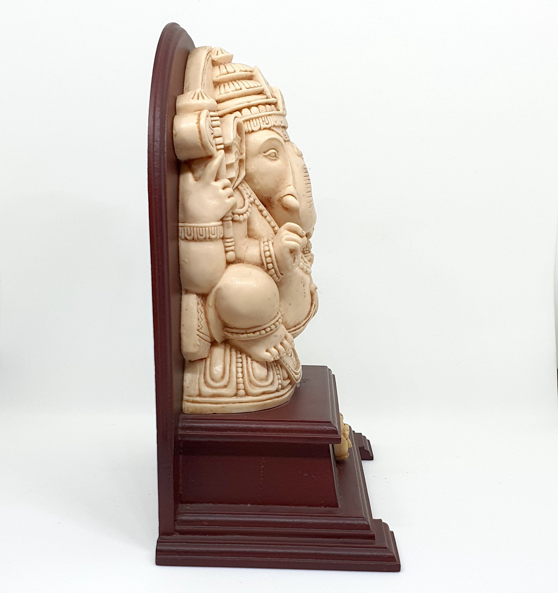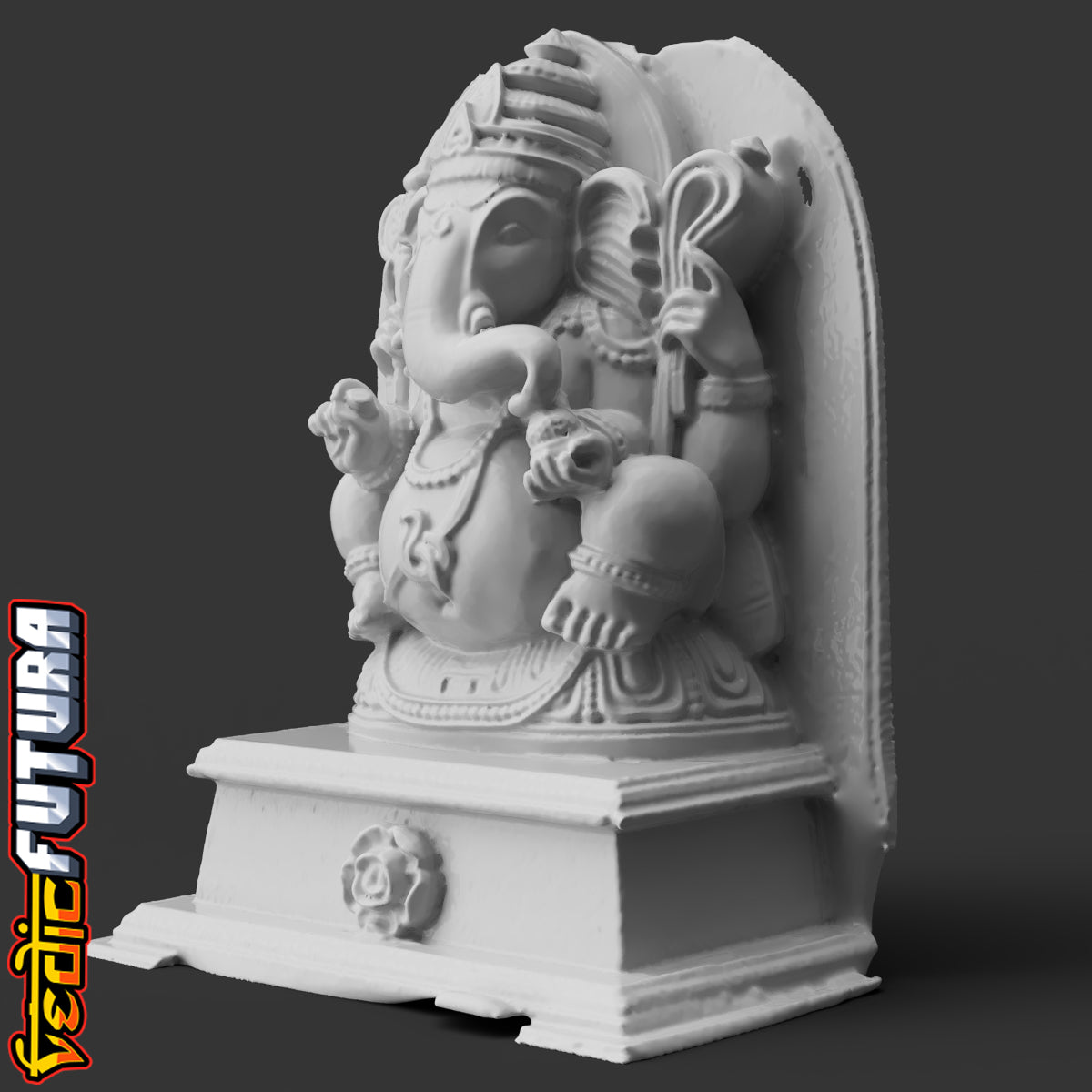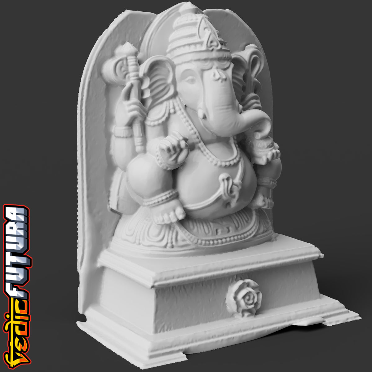 Representations of Ganesha show wide variations and distinct patterns changing over time. He may be portrayed standing, dancing, heroically taking action against demons, playing with his family as a boy, or sitting down on an elevated seat, or engaging in a range of contemporary situations.
