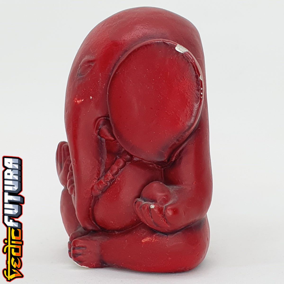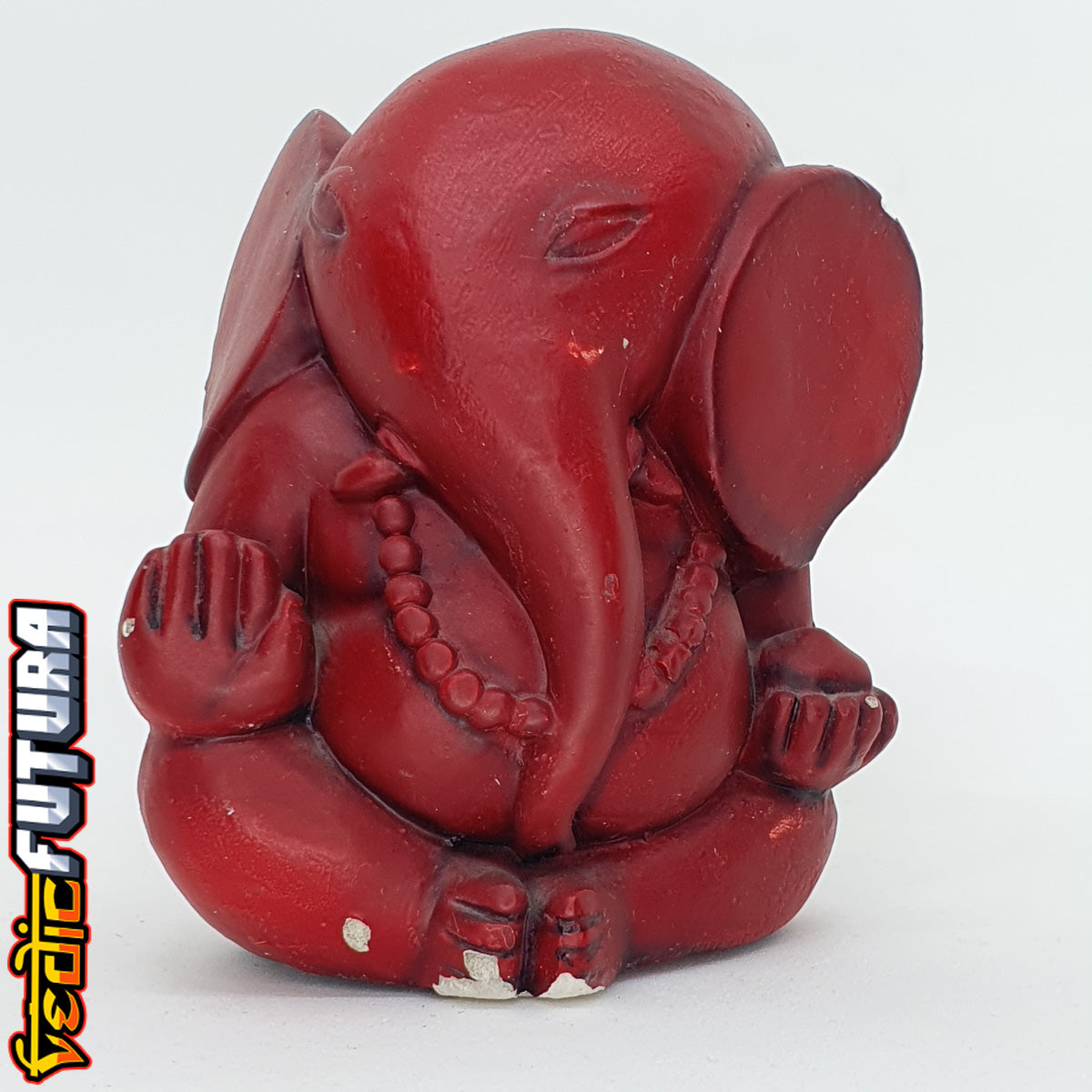 He is a patron of writers, travellers, students, and commerce, he removes obstacles blocking new projects and is fond of sweets, to the slight detriment of his figure. Seen here carrying a sweet snack in his left hand and right hand in abhaya mudra pose (blessing)