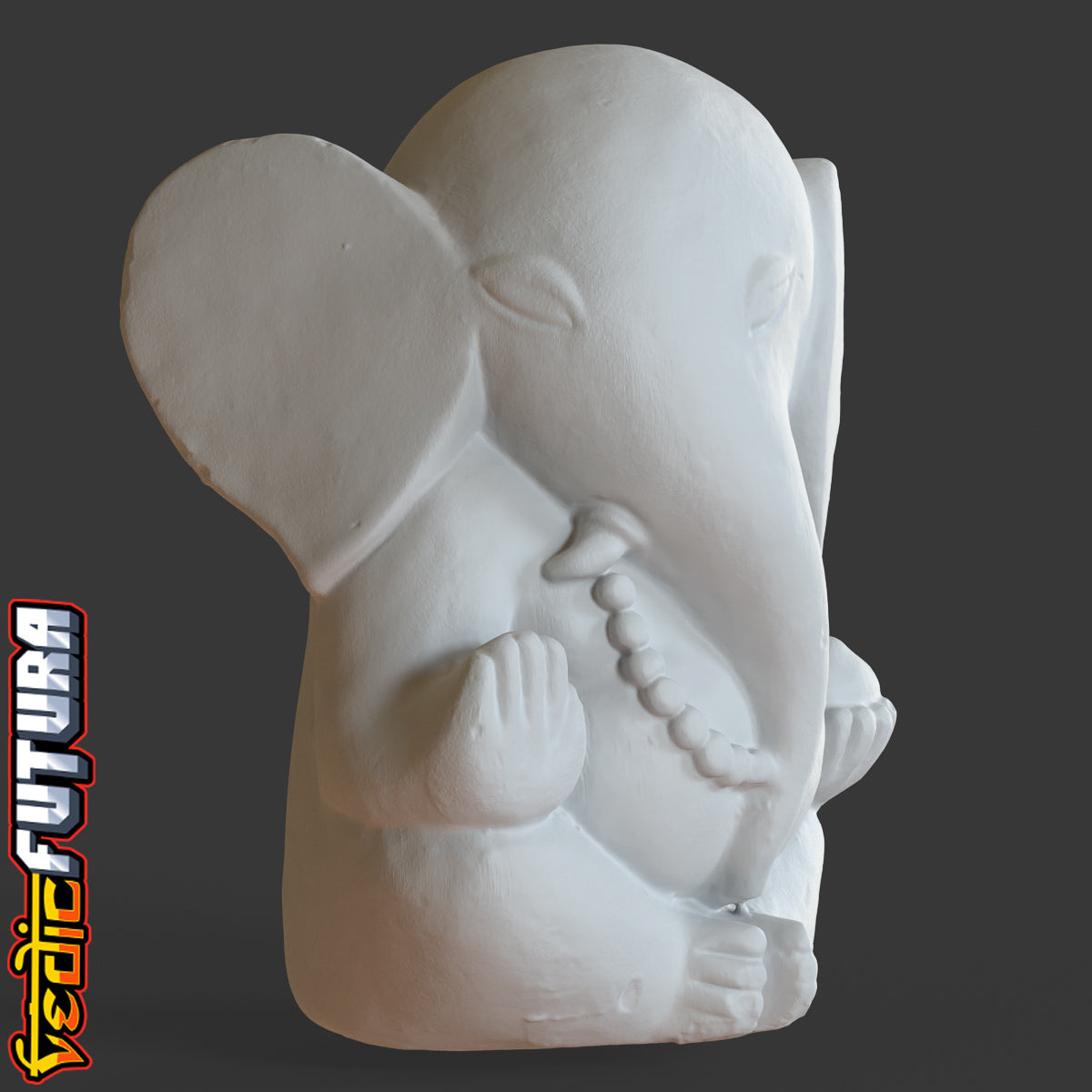 A sleek, modern Ganesha is highly recognisable with his elephant head and human body, representing the soul (atman) and the physical (maya). He is depicted in an innumerable variety of forms by artists.