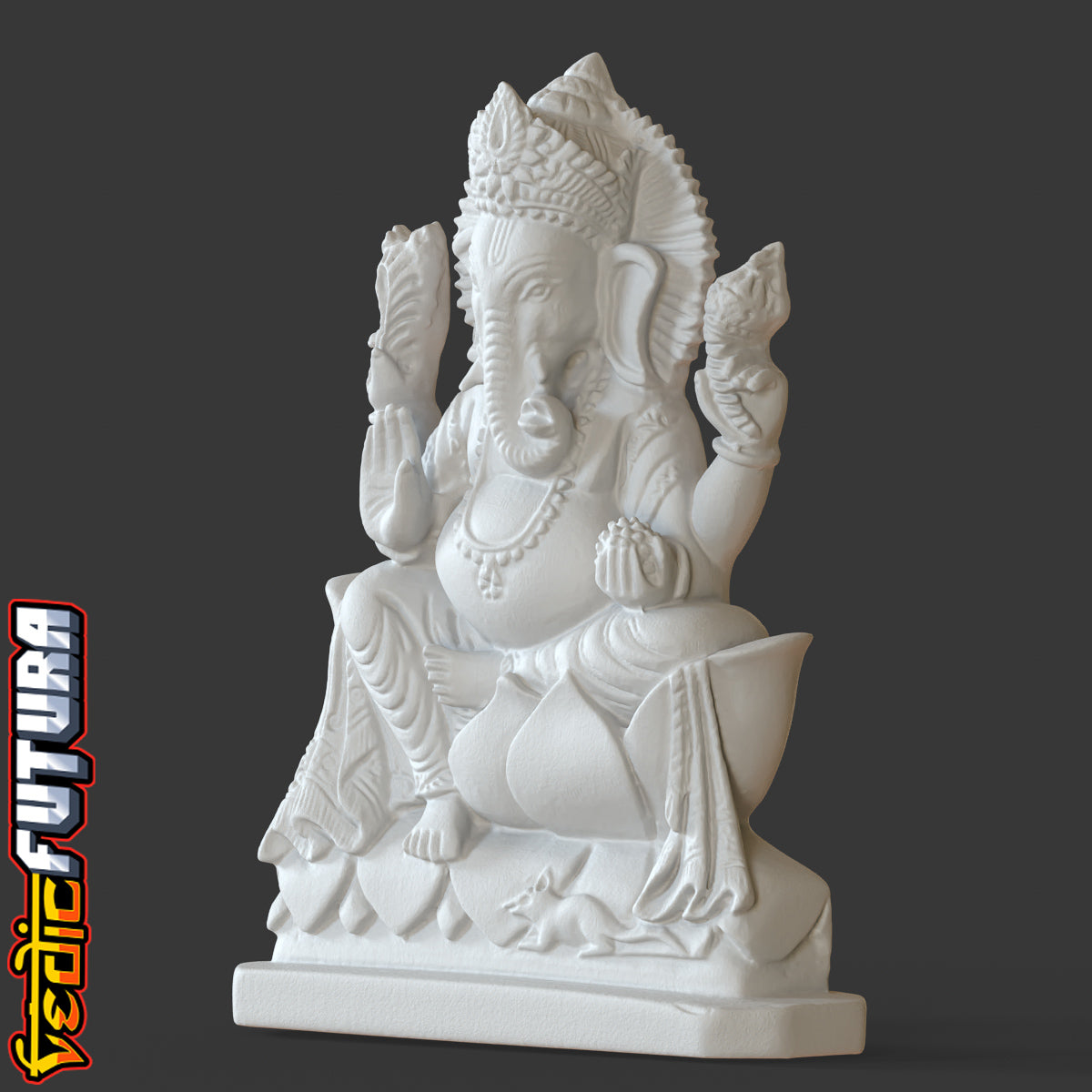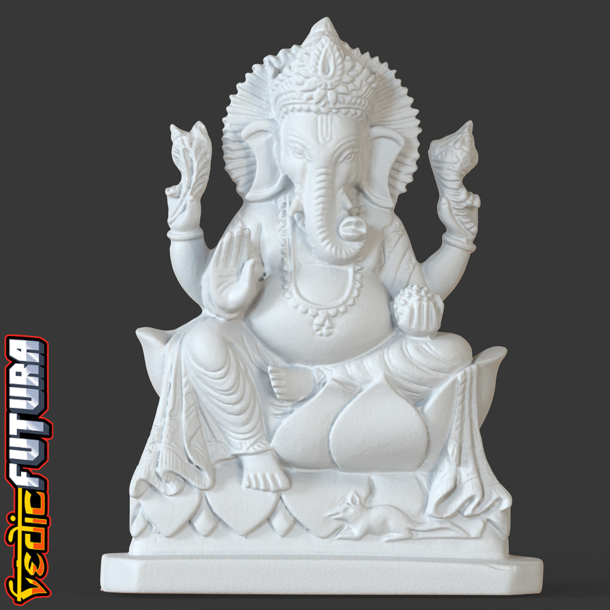 The Hindu elephant god Ganesha is shown sitting on an elevated lotus seat, blessing with one hand, holding his favorite sweet dish ‘moodak’ with his other. He is never shown eating or enjoying the moodak signifying not being attached to the results of your efforts but focusing on the effort itself. With his back right hand he carries a goad, used by elephant handlers to direct an elephant, discipline it if need be. With his back left hand, Ganesha carries a noose ued to capture difficulties helping to ease the path to success.