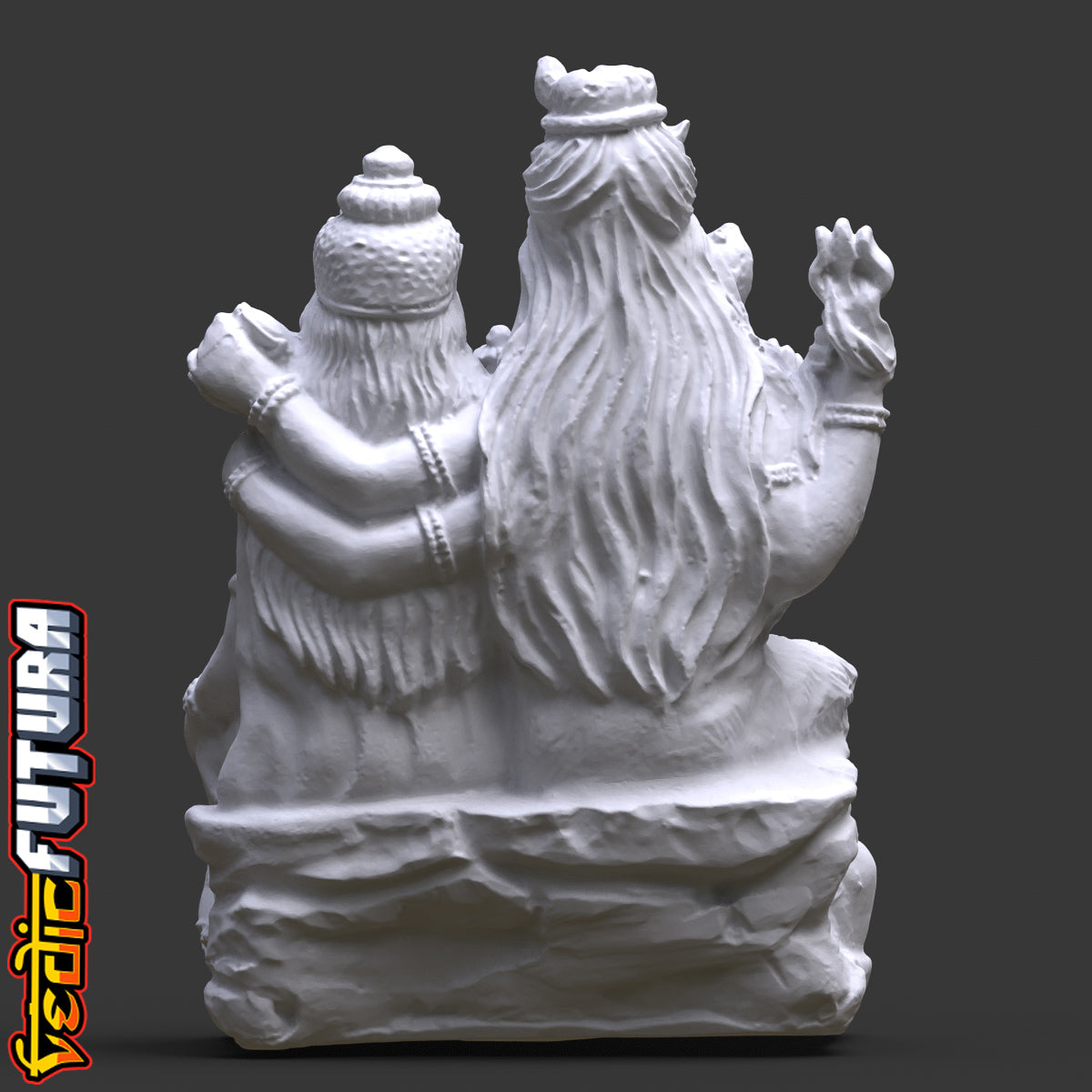 Ganesha is the son of Shiva and Parvati. He was created by his mother using earth which she moulded into the shape of a boy. As Shiva was away on his meditative wanderings, Parvati set her new son as guard while she bathed. Unexpectedly, Shiva returned home and, on finding the boy, and outraged at his impudence in claiming he was Parvati's son, lopped off his head. At the commotion, Parvati ran from her bath and remonstrated with Shiva for so summarily killing their son. Repentant, Shiva ordered a new head to be found for the boy and, as the first animal available was an elephant, so Ganesha gained a new elephant head and became the most distinctive of the Hindu gods.