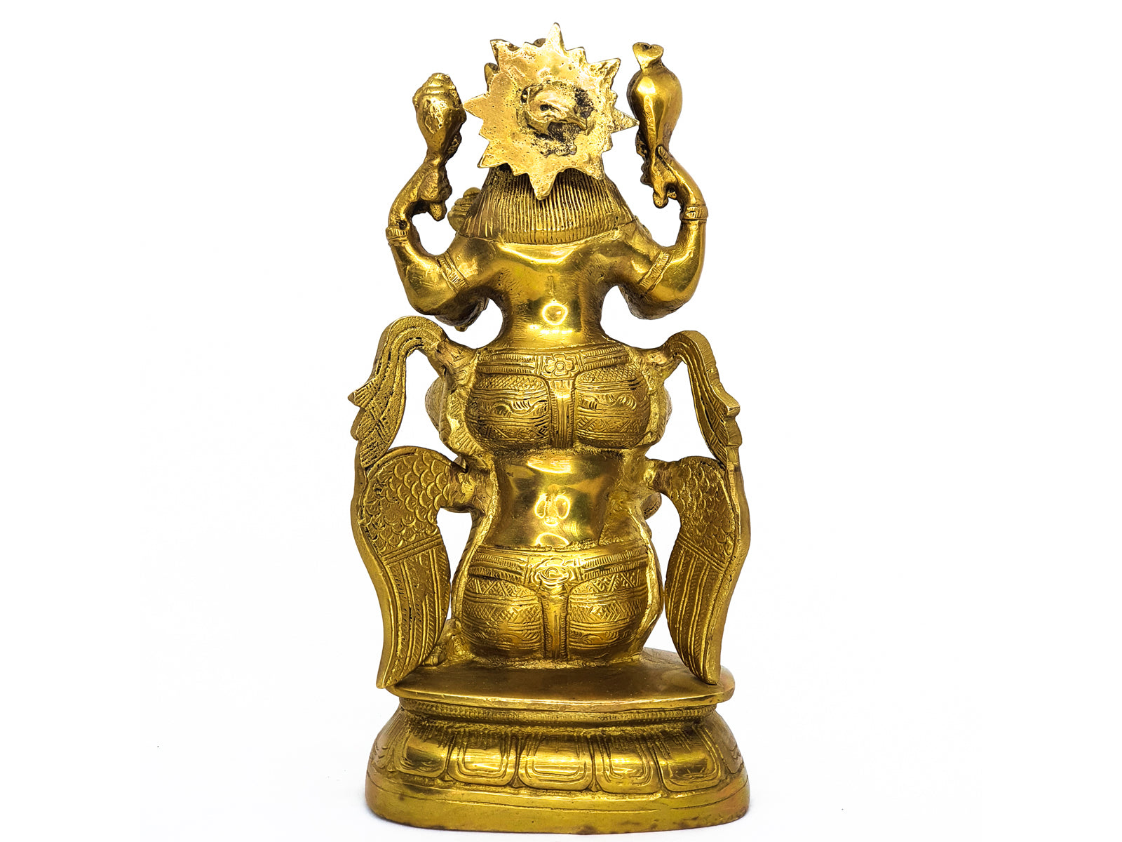 Garuda's mythology is linked to that of Aruna – the charioteer of Surya (The Hindu Sun god). Both Aruna and Garuda developed from an egg. Garuda's links to Vishnu – the Hindu god who fights injustice and destroys evil in his various avatars to preserve dharma, has made him an iconic symbol of king's duty and power, an insignia of royalty or dharma. His eagle-like form is shown either alone or with Vishnu, signifying divine approval of the power of the state.