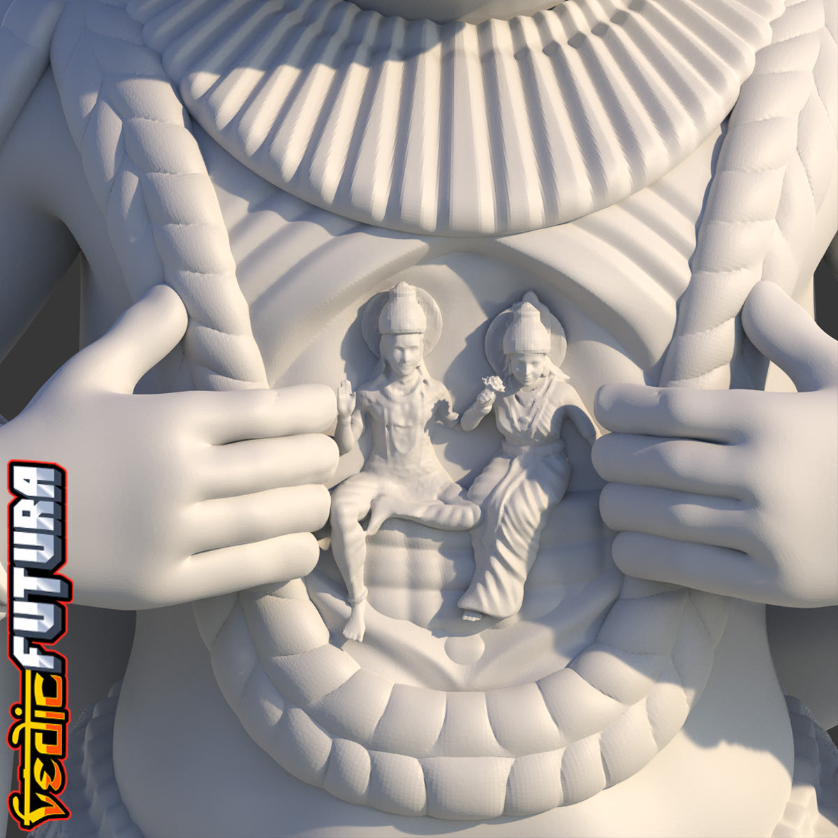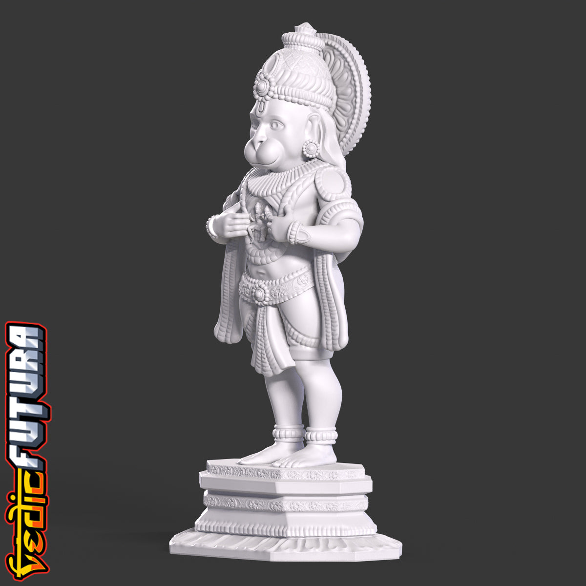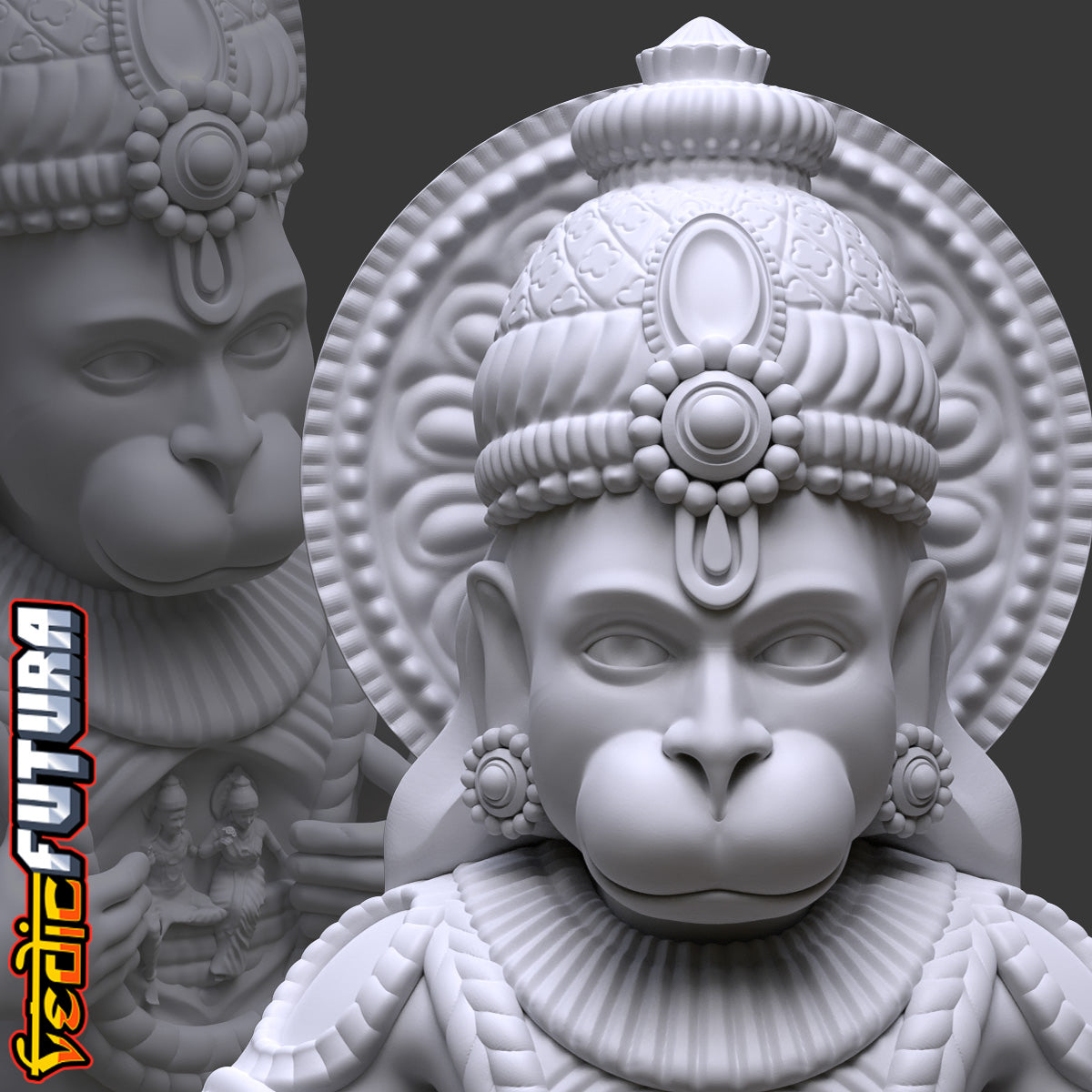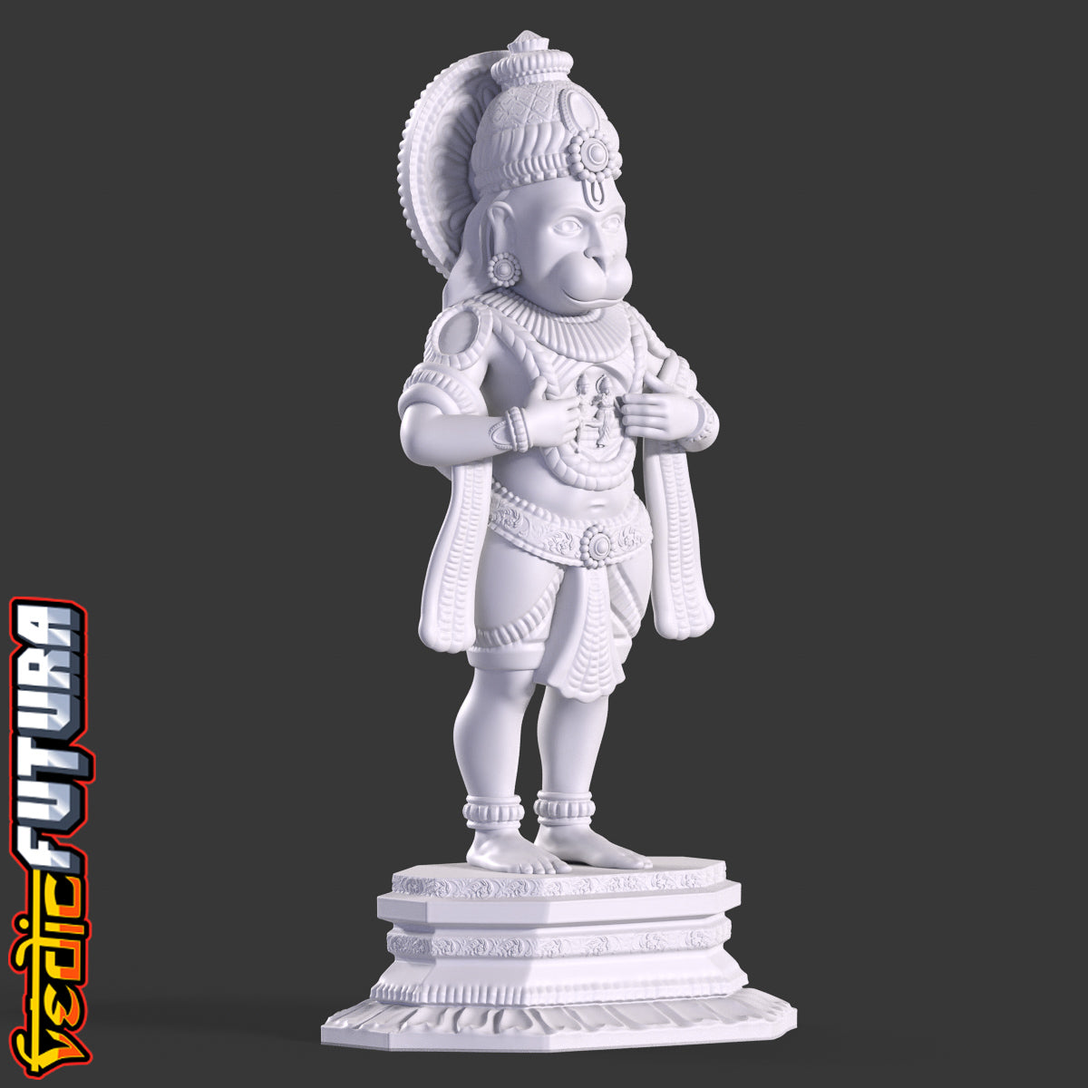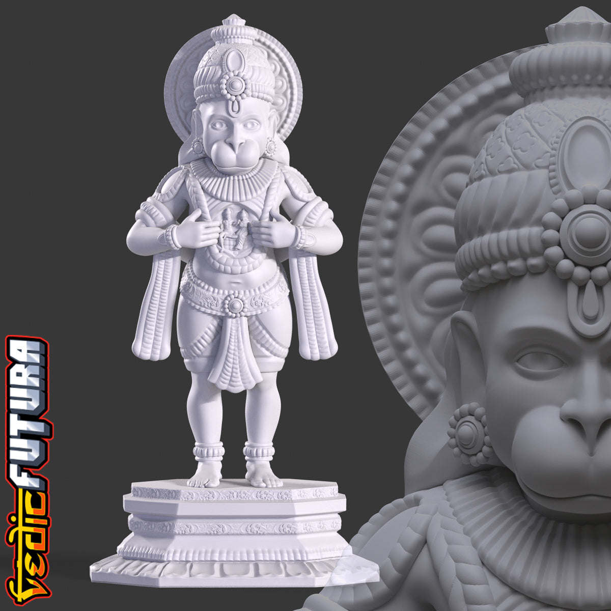 This recreation of a wooden sculpture of Hanuman is a powerful representation of the profound devotion and selfless love that Hanuman embodied. Hanuman, a devoted and loyal devotee of Lord Rama, is often depicted in this iconic pose. The scene depicted in the sculpture is derived from the epic Indian epic, the Ramayana where Hanuman plays a pivotal role.