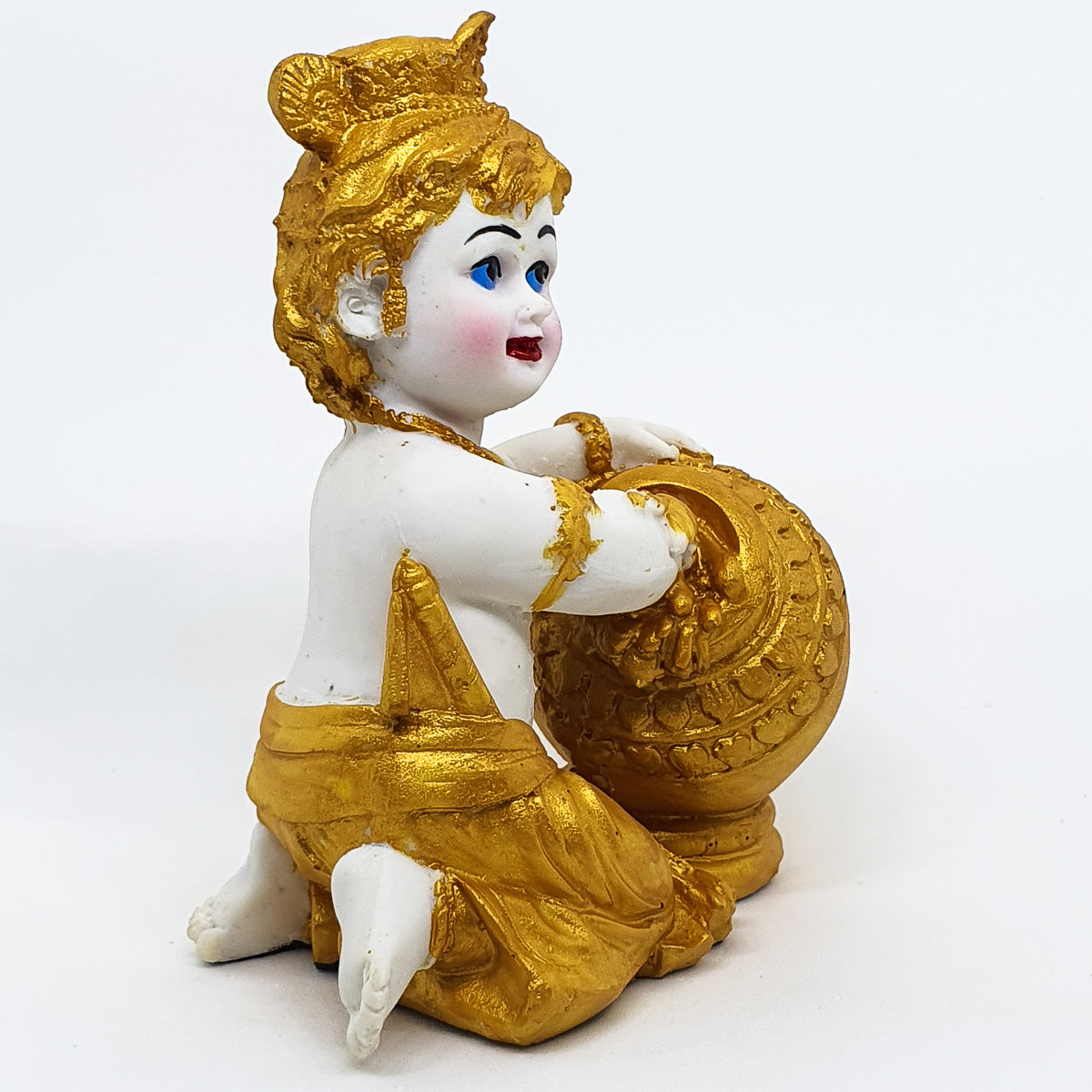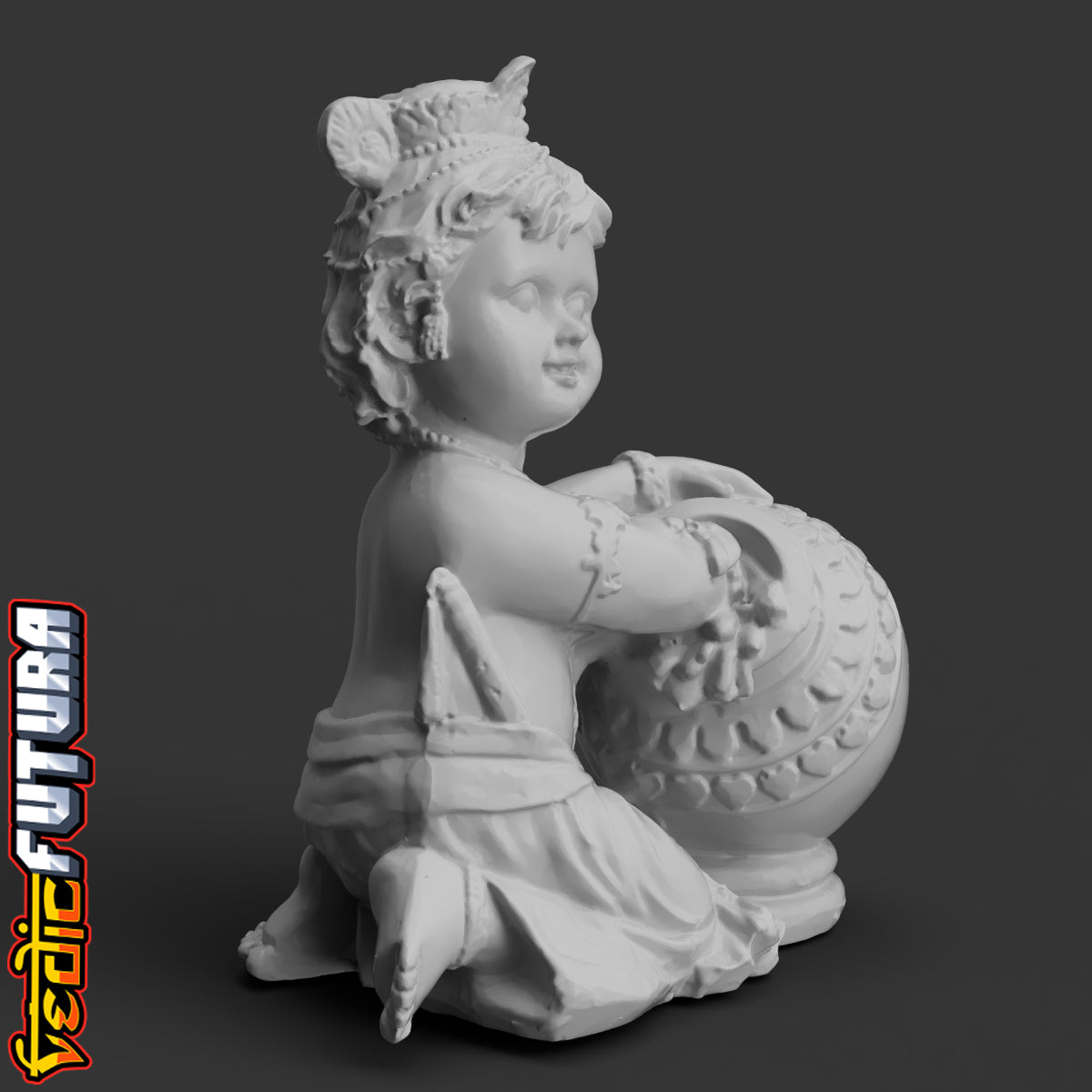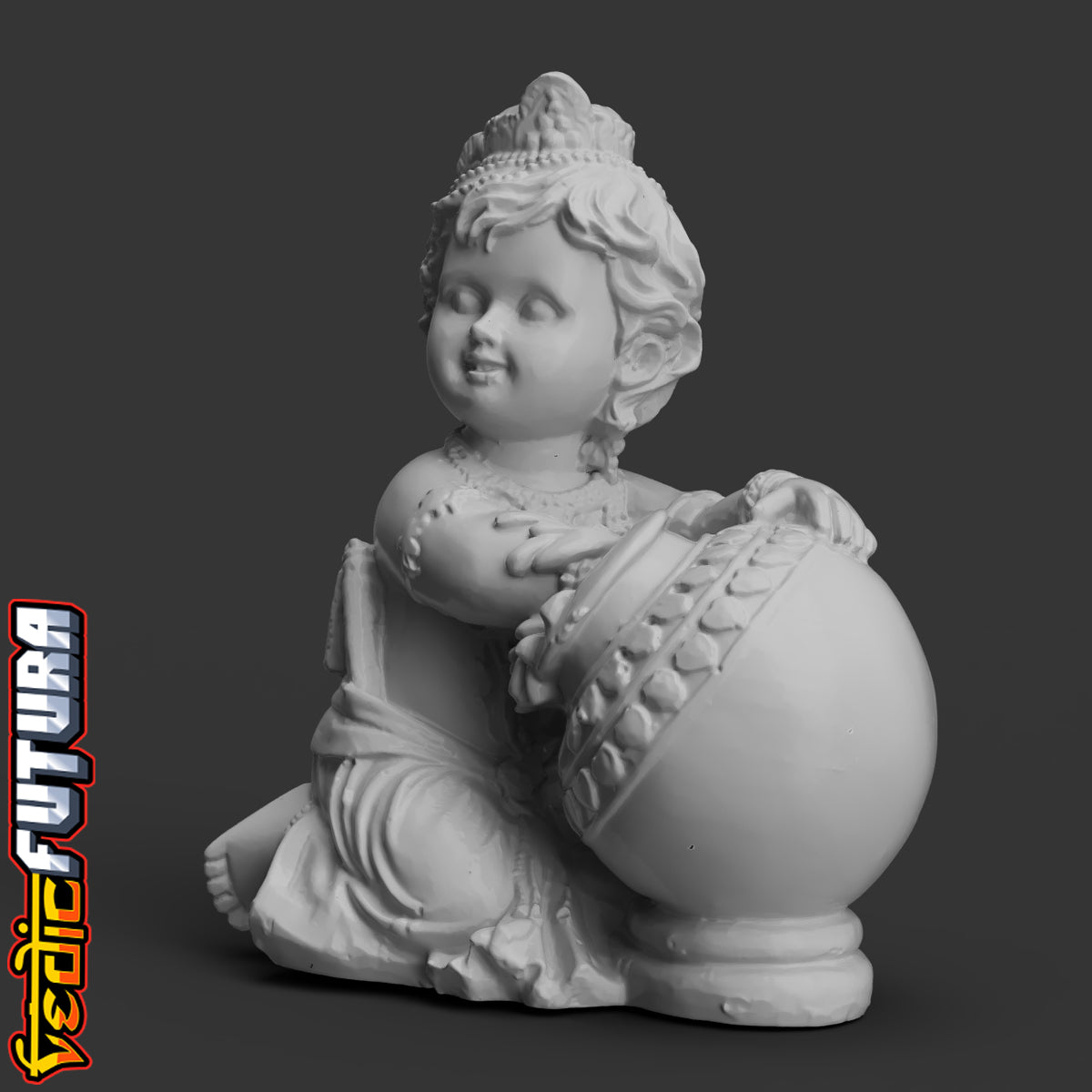 The iconic representation of Bala Krishna (child Krishna) stealing butter from his neighbours.