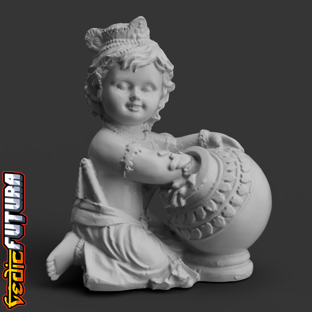 “Secondly, the family members of the Gopis were not fond of Krishna. They thought that Krishna was a mere cowherd boy. But the Gopis had deep devotion for Krishna. They longed to offer butter to Krishna, but were forbidden by their family members. Even while churning the butter, the Gopis prayed to Krishna to accept the butter as their token of love. They stored some butter in pots and left to sell other milk products such as buttermilk, butter and cheese.