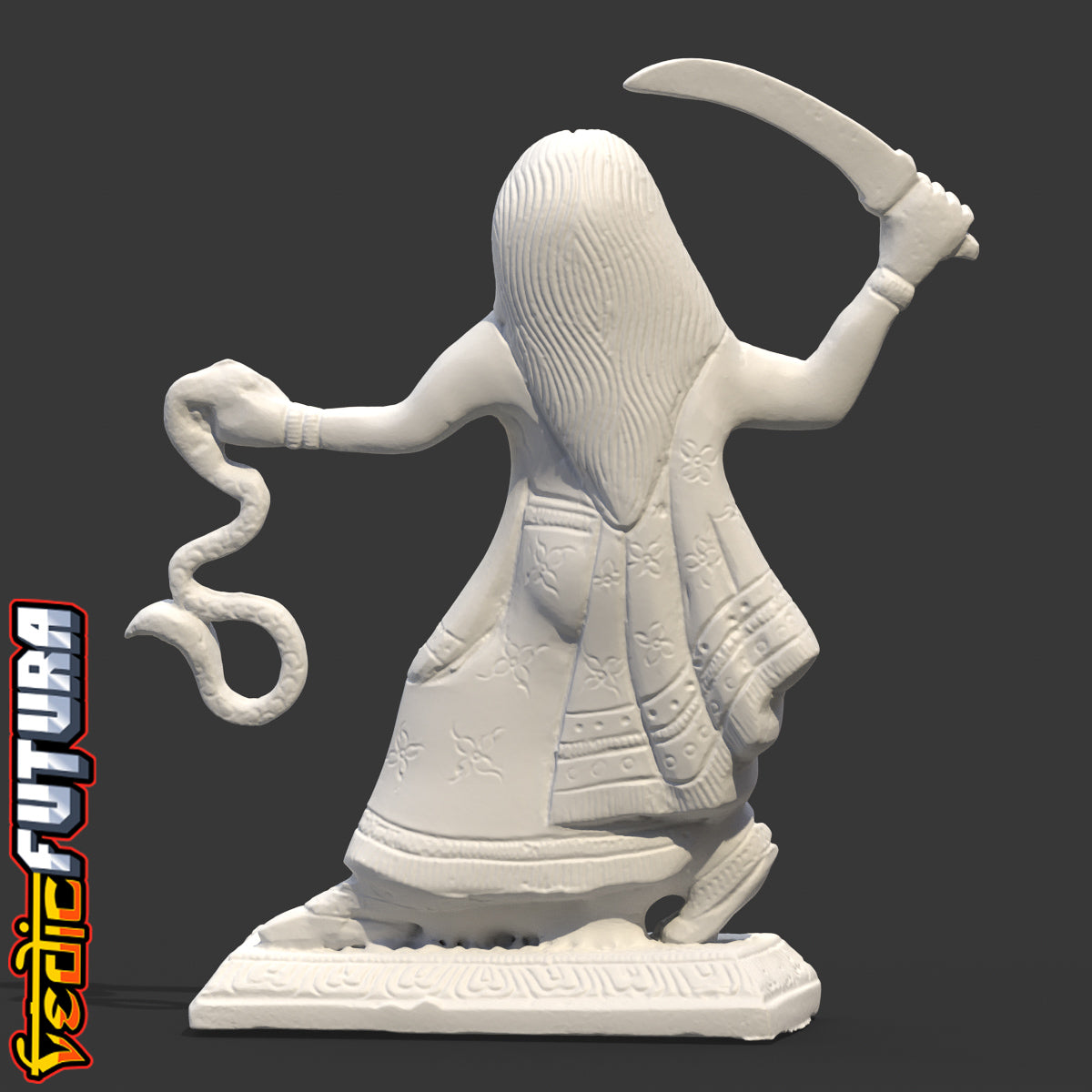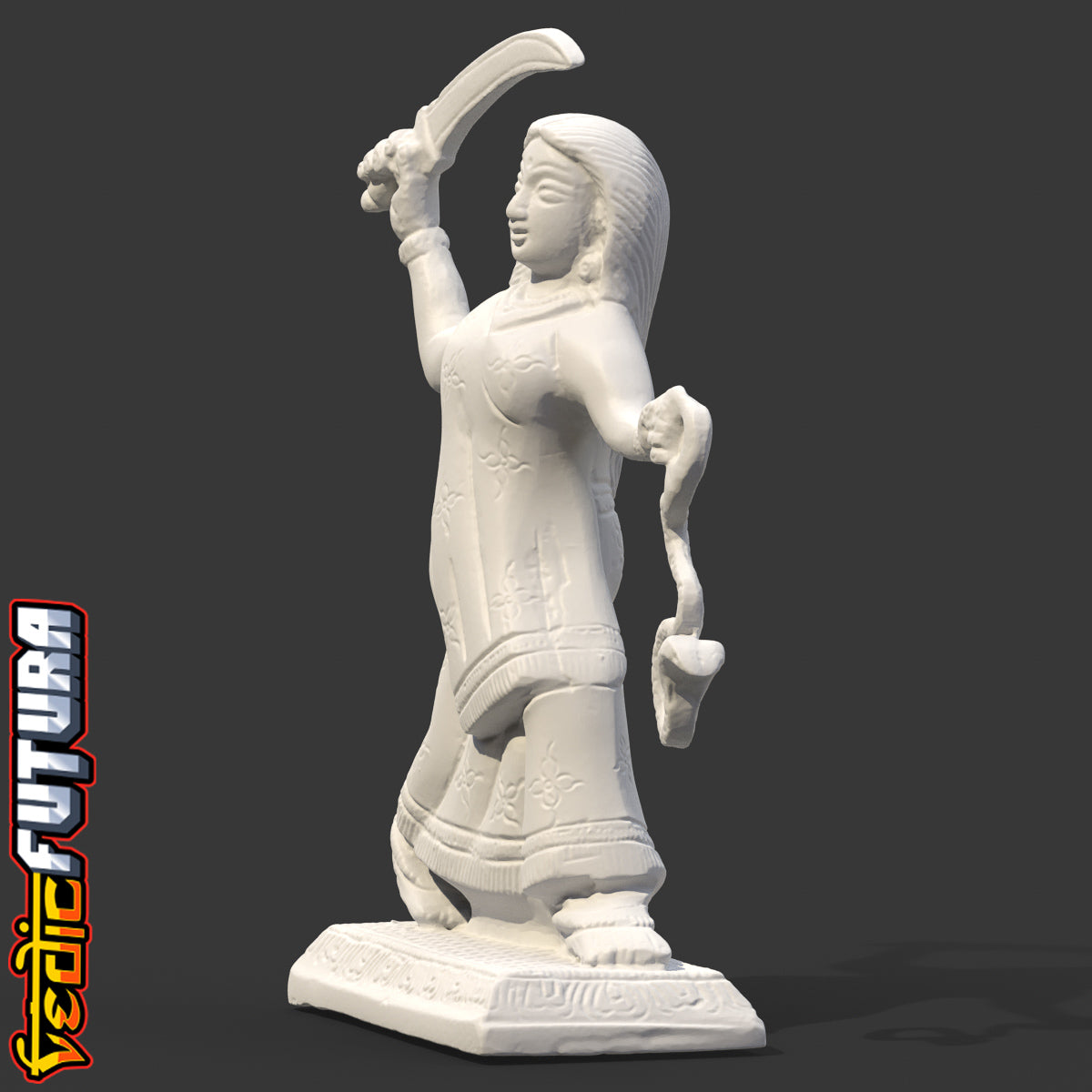 In one hand, Mogal Ma holds a serpent, a symbol of wisdom, renewal, and transformation. This element highlights her connection to the natural world and her power to protect and guide her followers through life's trials. The other hand wields a sword, a representation of her strength, courage, and the ability to cut through darkness and ignorance, embodying her role as a warrior goddess who fights against evil.