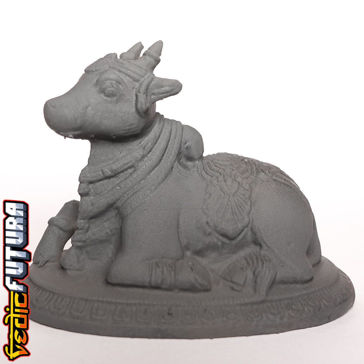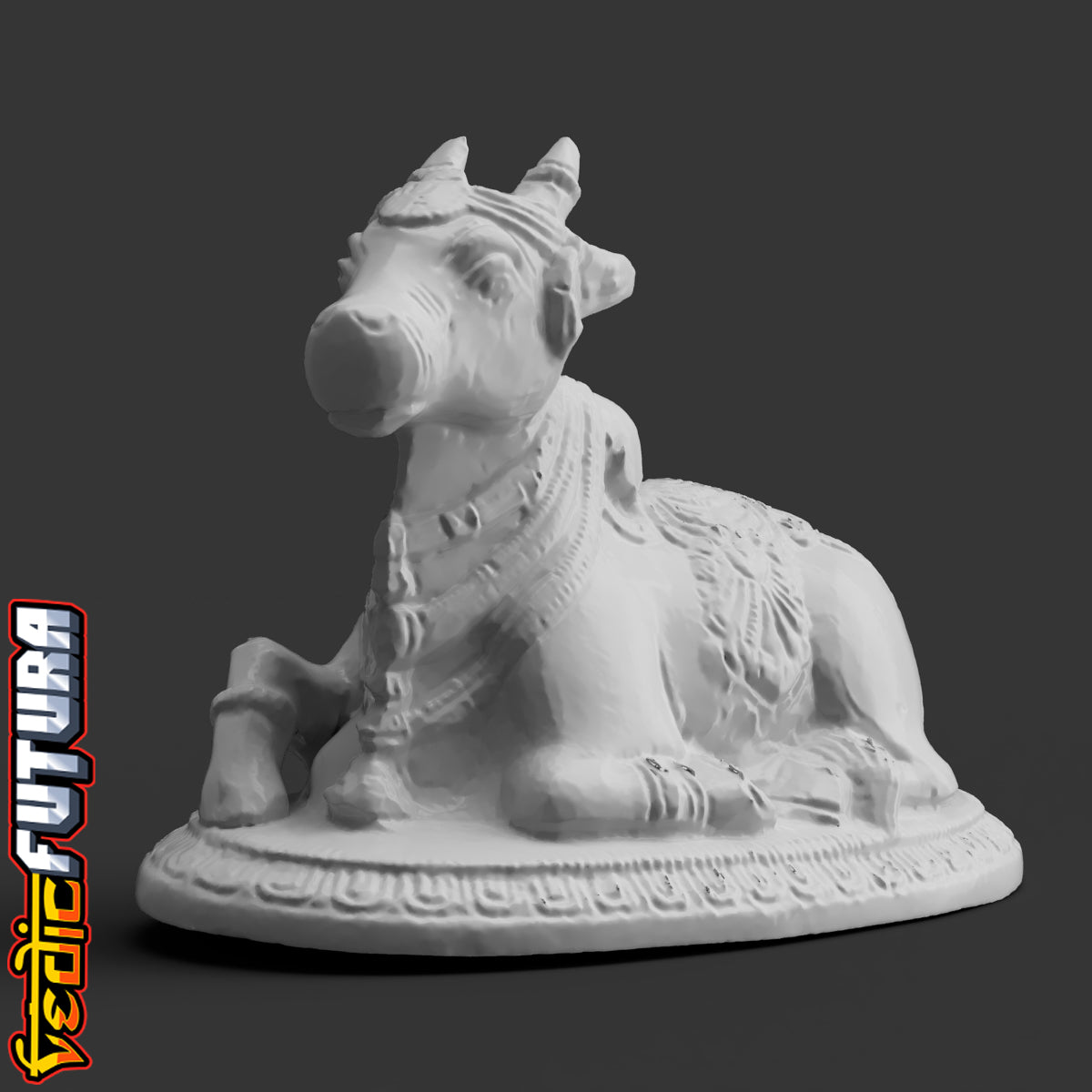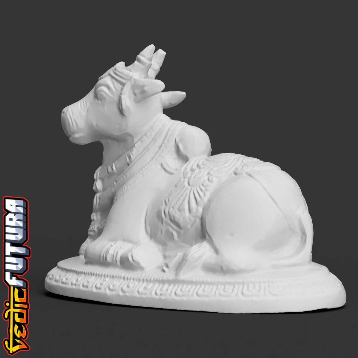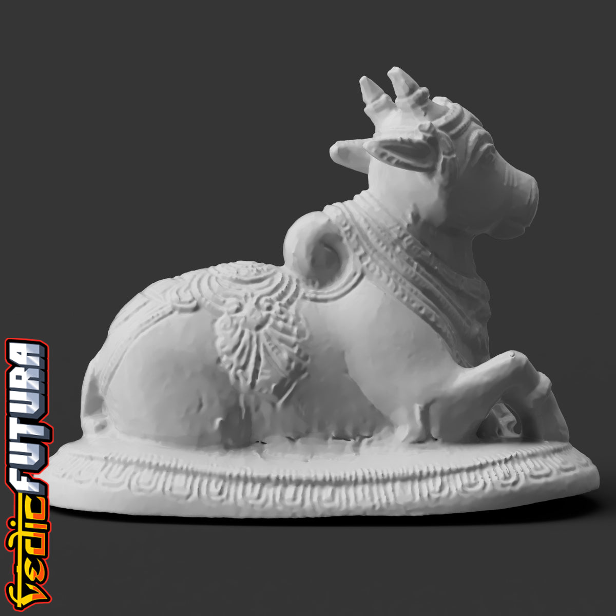 Nandi is the sacred bull calf, gatekeeper, and vehicle (vahana) of the Hindu god Shiva. Sculptures of Nandi are a common sight at Hindu temples dedicated to his master, and he is partly responsible for the Hindu reverence for living bulls even today. A statue of Nandi is present as a bull sitting on a plinth in front of most Hindu temples dedicated to Shiva. The bull is often dressed by worshippers with bells, clappers, and a necklace of flowers.