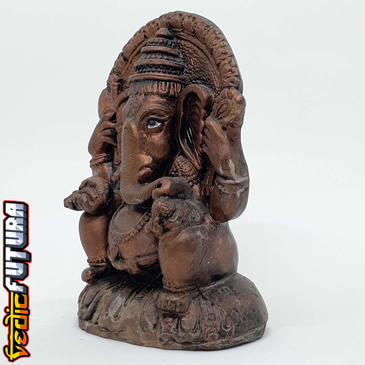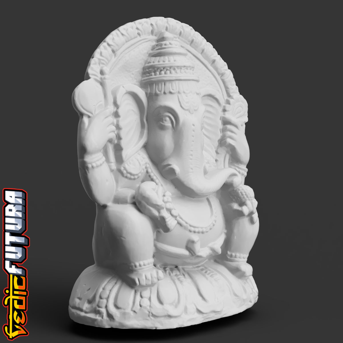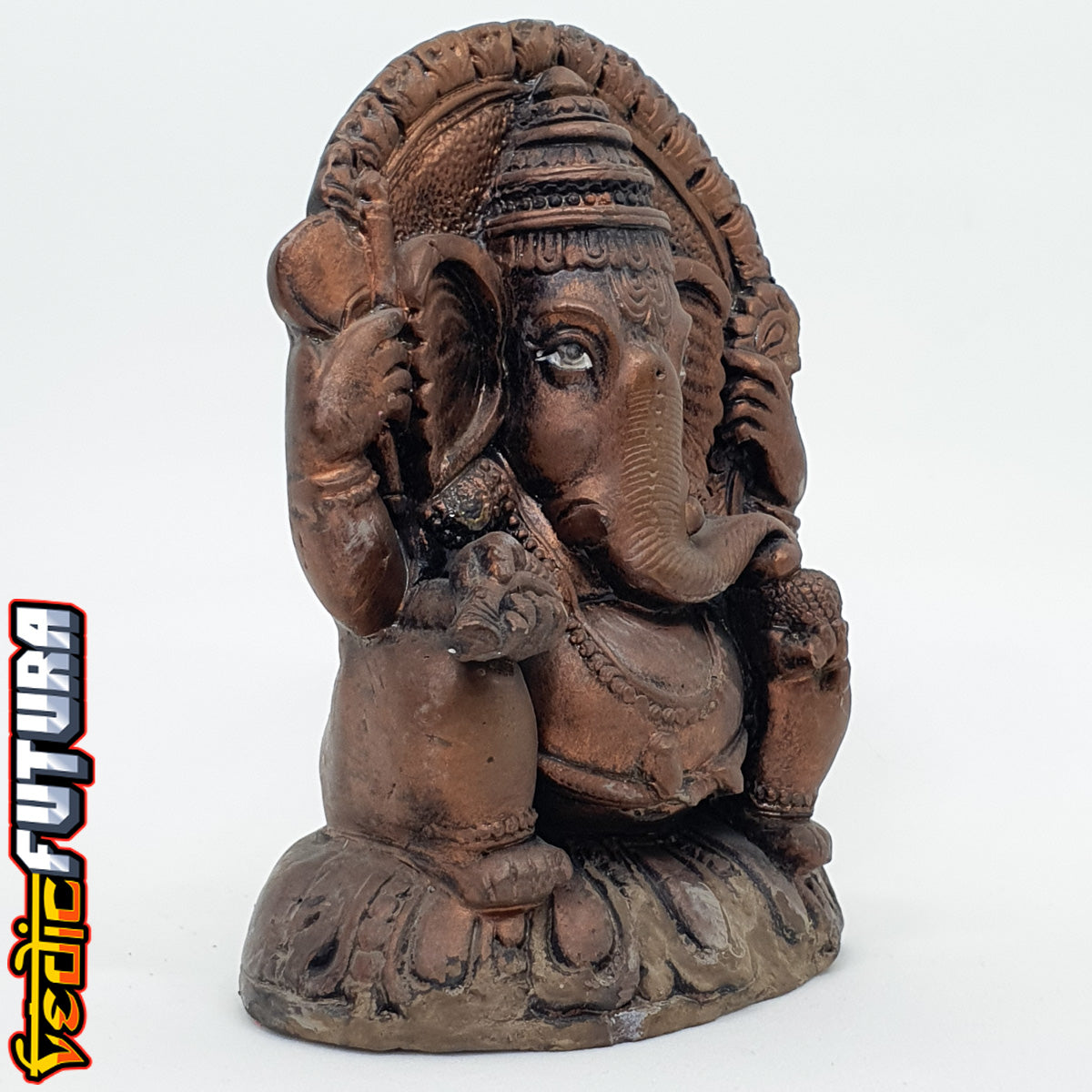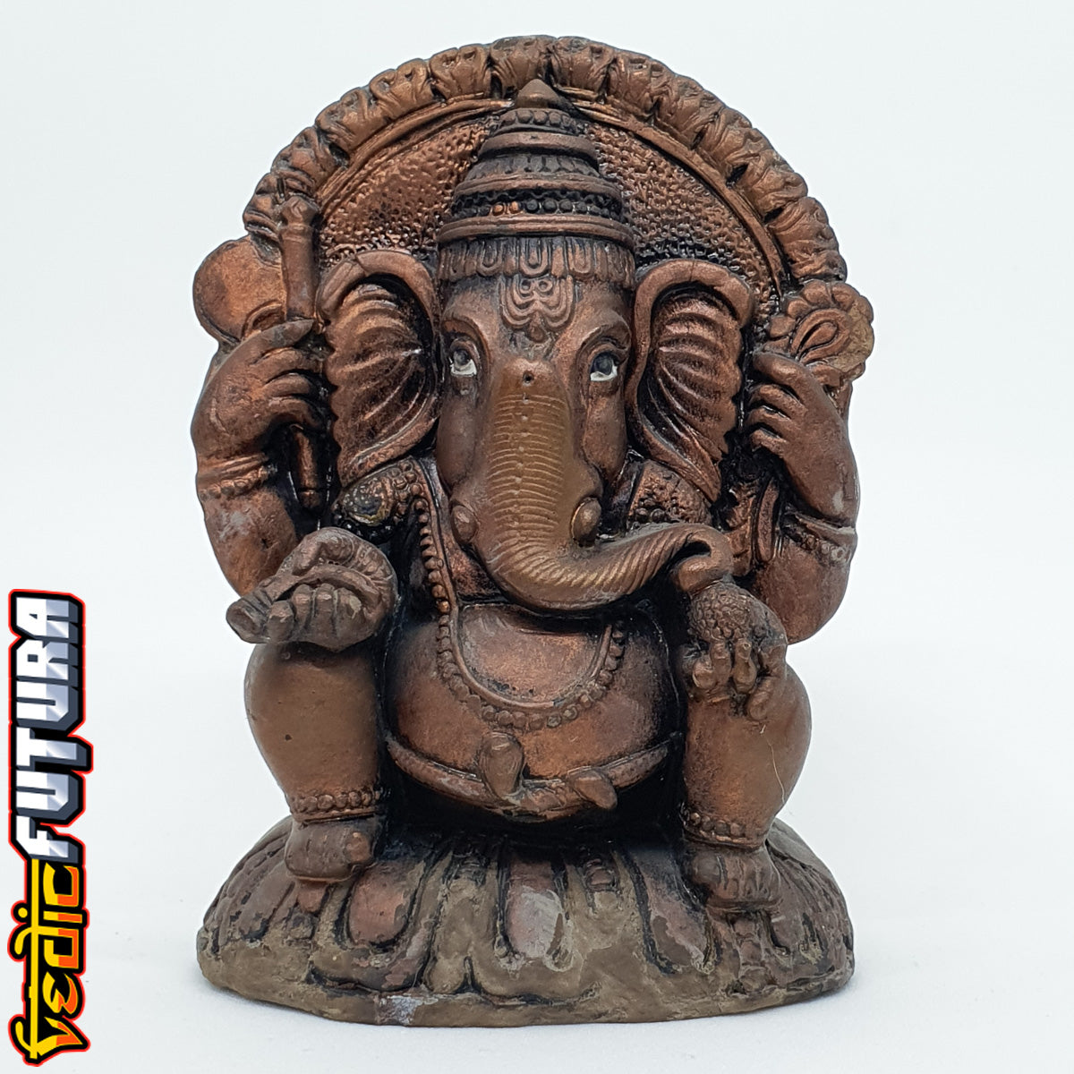 The hand waving an axe, is a symbol of the retrenchment of all desires, bearers of pain and suffering. With this axe Ganesha can both strike and repel obstacles. The axe is also to prod man to the path of righteousness and truth;