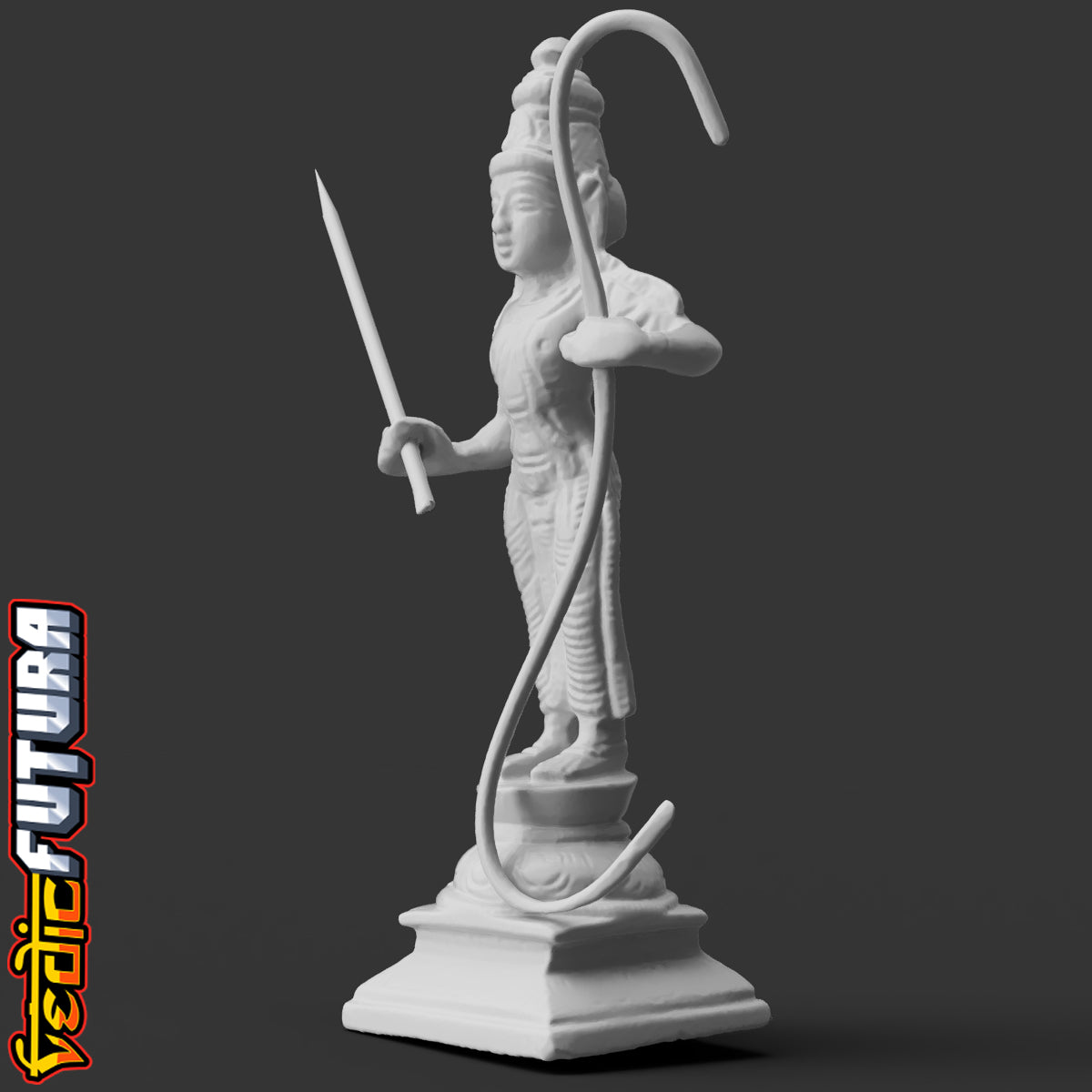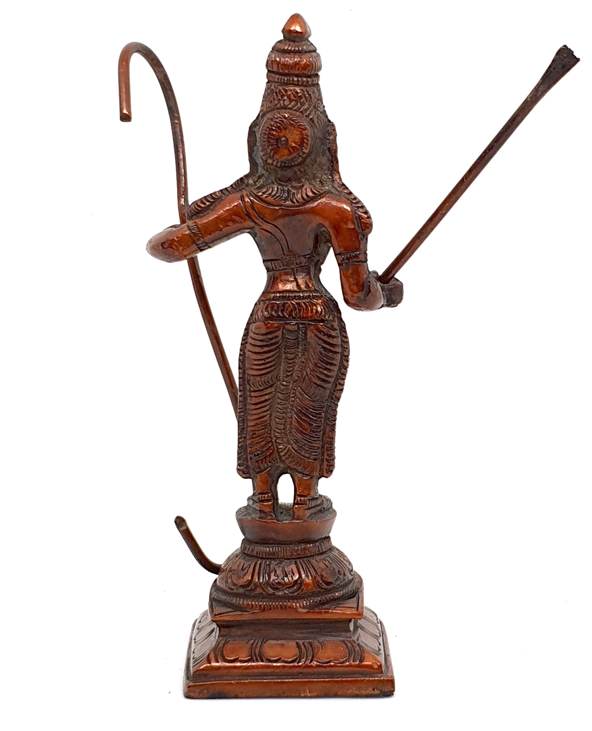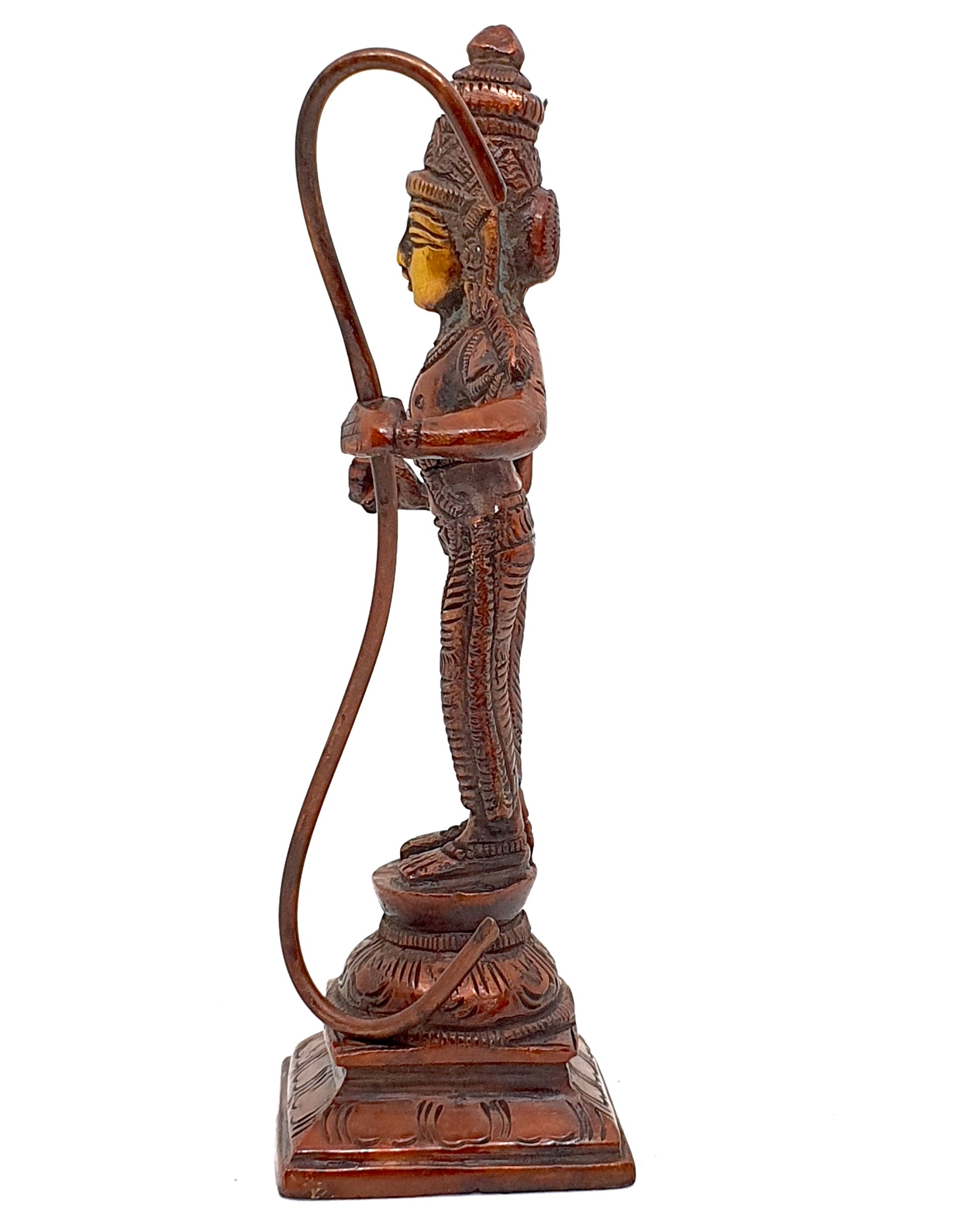 Rama iconography shares elements of Vishnu avatars, but has several distinctive elements. It never has more than two hands, he holds (or has nearby) a bana (arrow) in his right hand, while he holds the dhanus (bow) in his left.