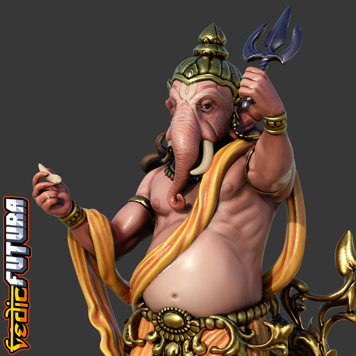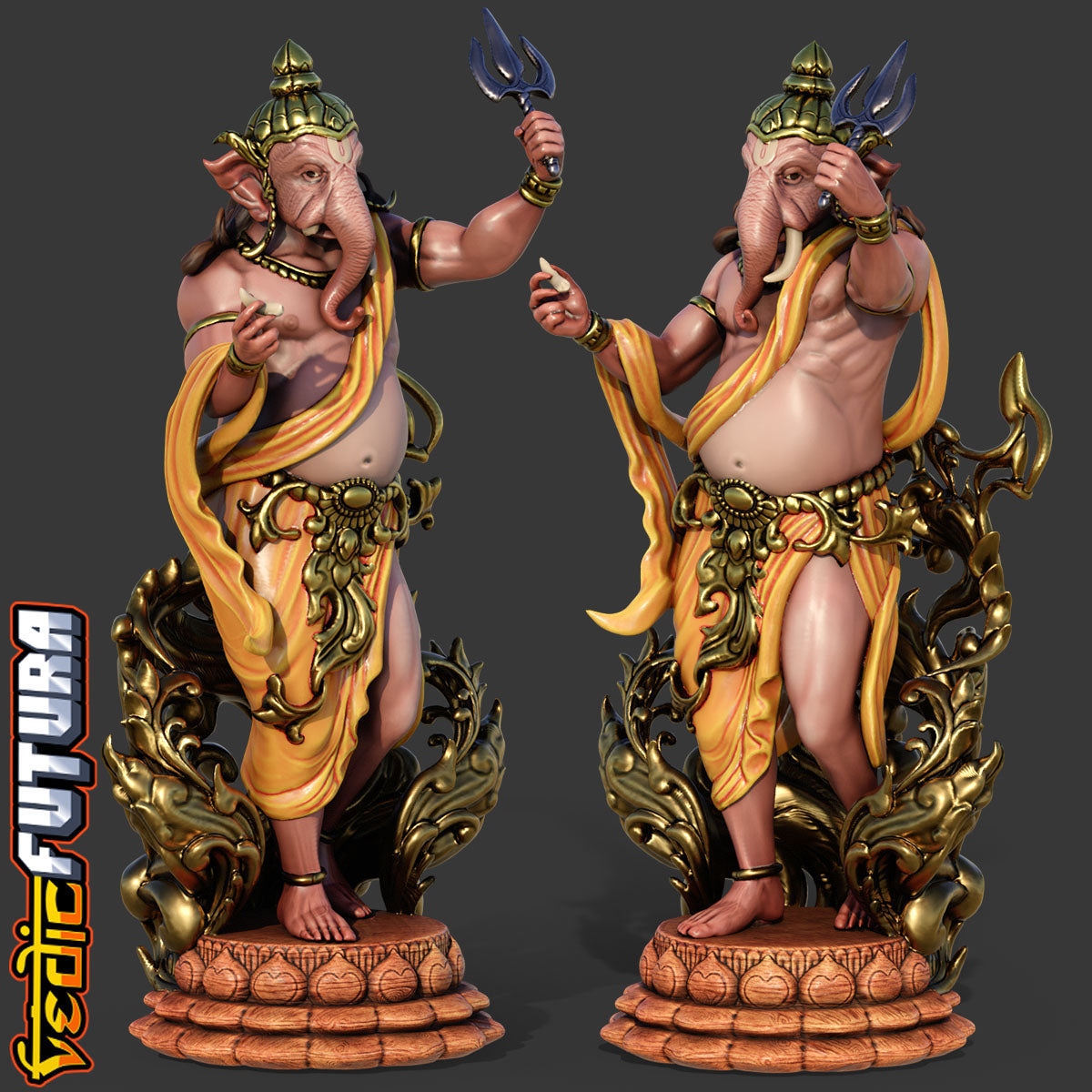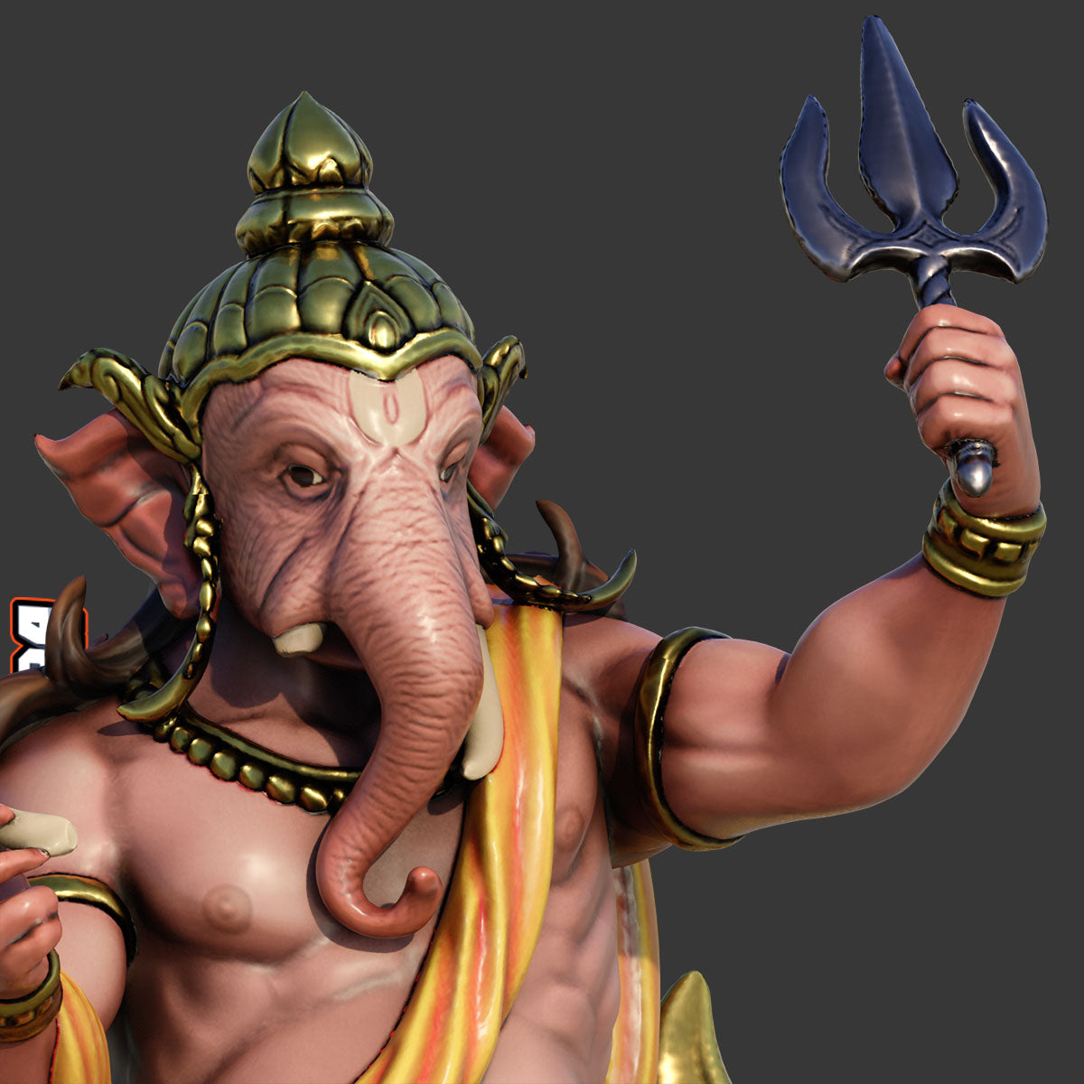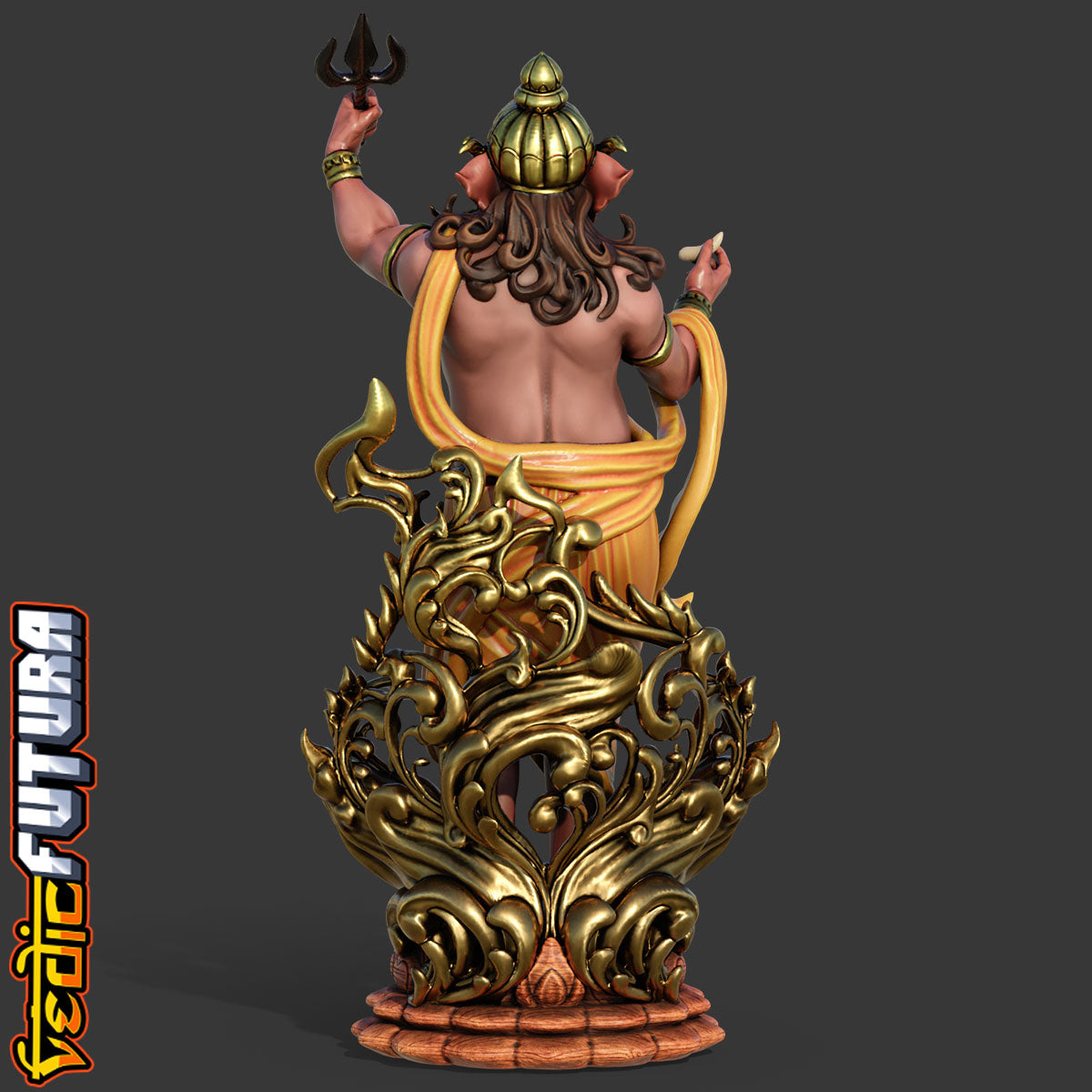 Ganesha is elephant-headed Hindu god of beginnings, who is traditionally worshipped before any major enterprise and is the patron of intellectuals, bankers, scribes, and authors. His name means both “Lord of the People” (gana means the common people) and “Lord of the Ganas” (Ganesha is the chief of the ganas, the goblin hosts of Shiva).