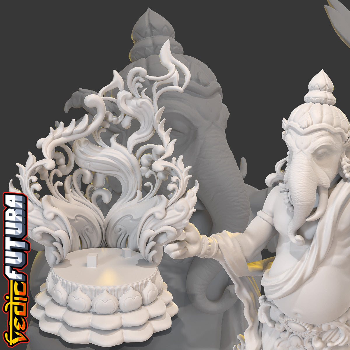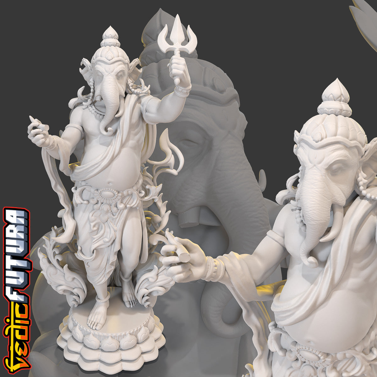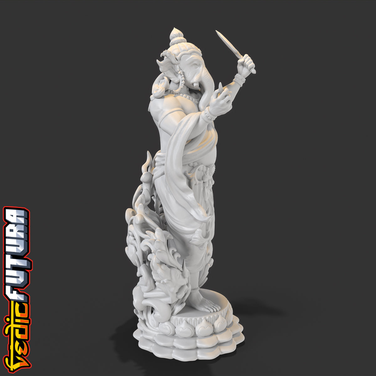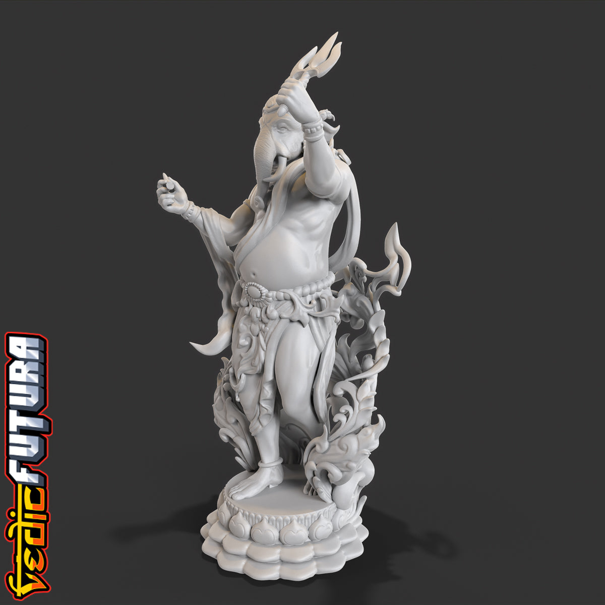 Ganesha is elephant-headed Hindu god of beginnings, who is traditionally worshipped before any major enterprise and is the patron of intellectuals, bankers, scribes, and authors. His name means both “Lord of the People” (gana means the common people) and “Lord of the Ganas” (Ganesha is the chief of the ganas, the goblin hosts of Shiva).