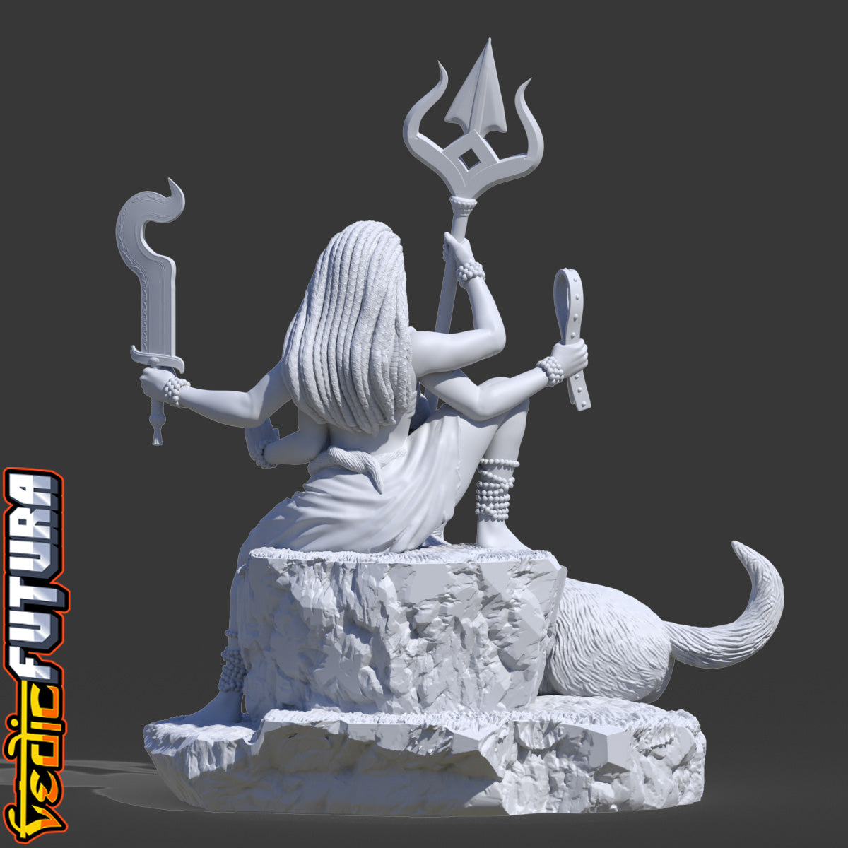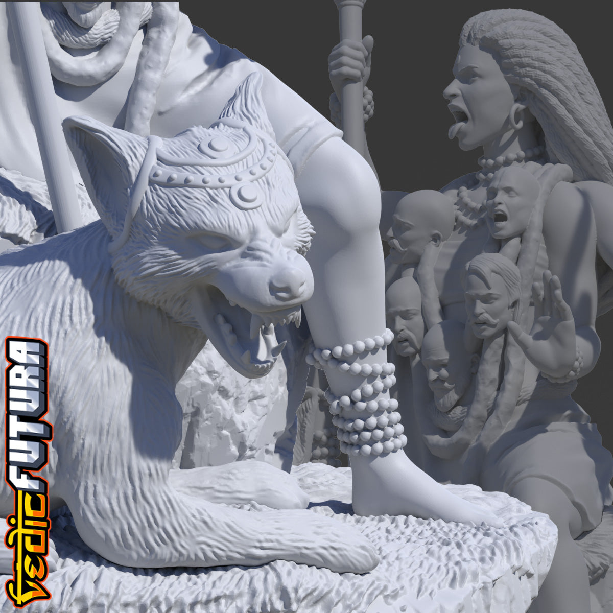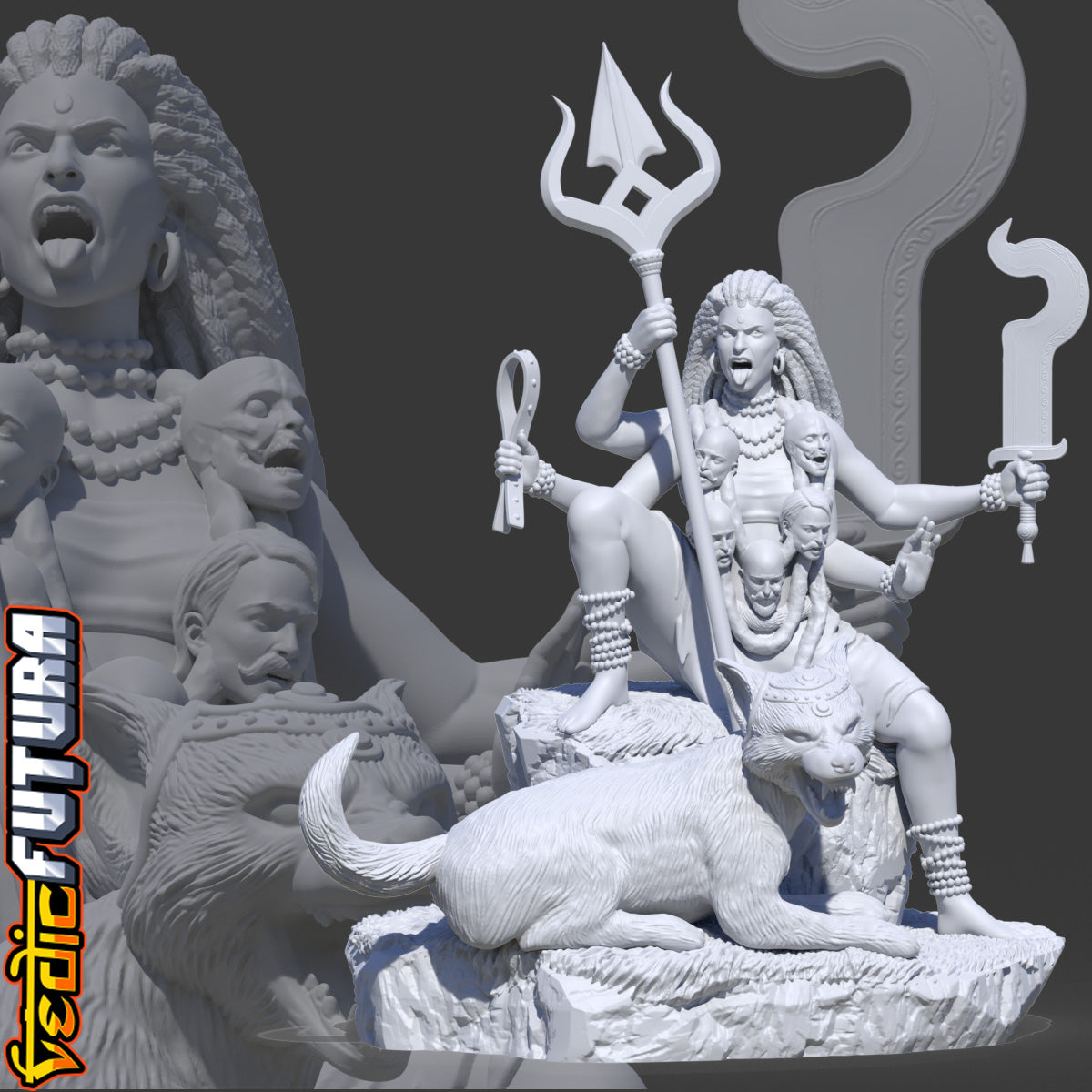 This image captures both the terror and the awe associated with Shivaduti, showcasing her as a guardian and warrior deity, embodying the relentless force of divine justice. The sculpture stands as a powerful artistic interpretation, blending mythological narrative with contemporary artistry, making it a striking piece that bridges ancient lore with modern expressions.