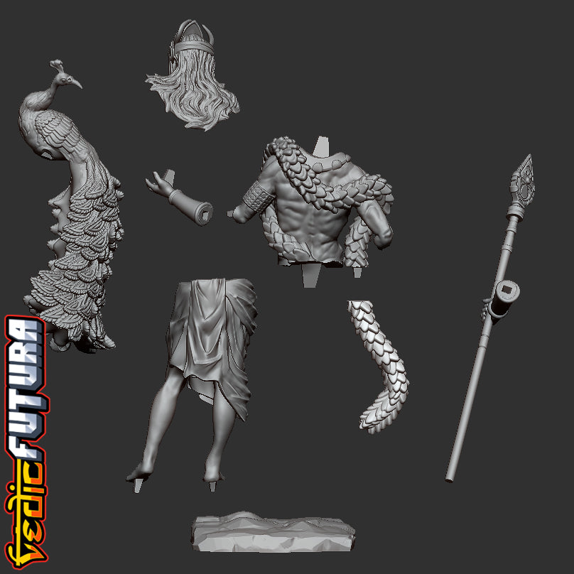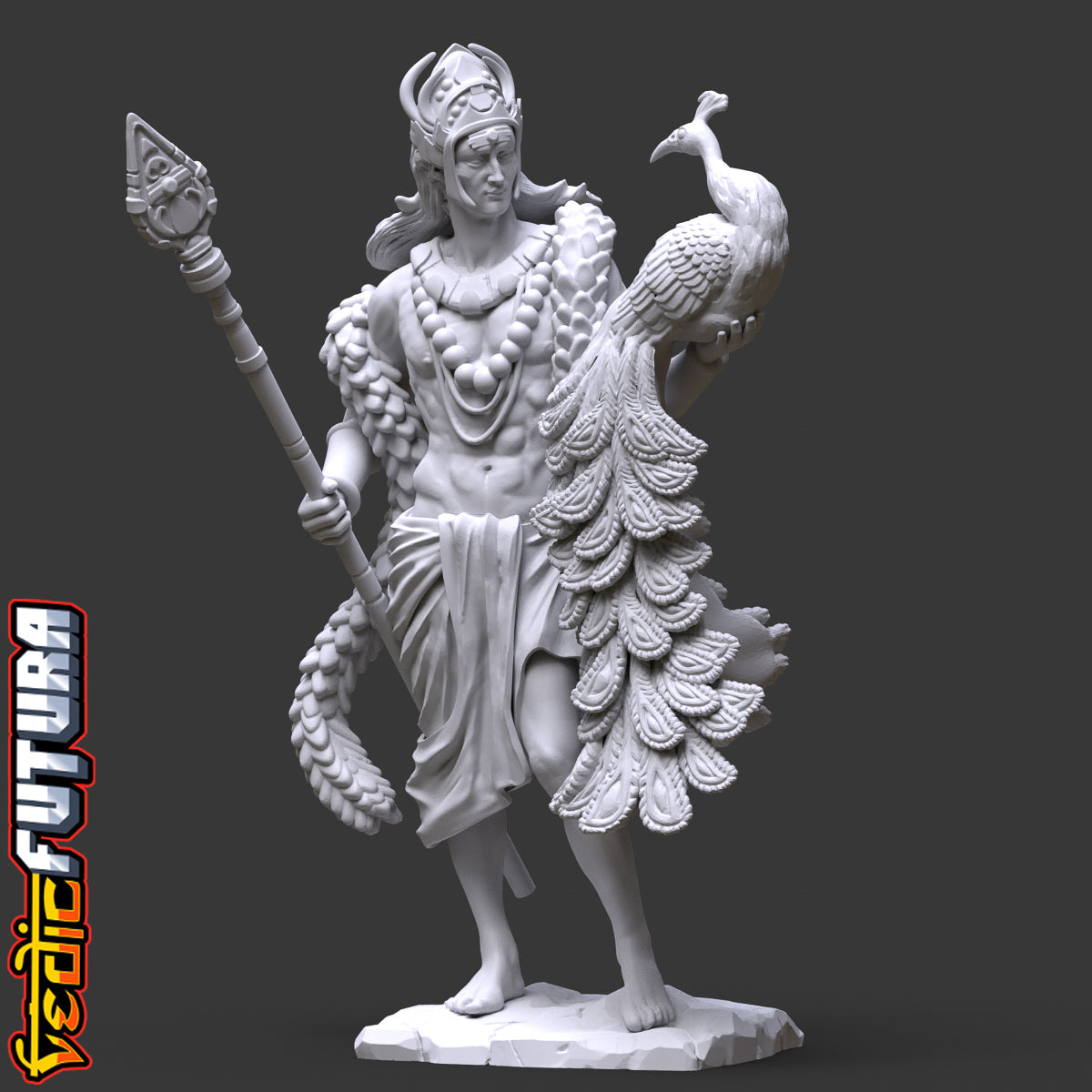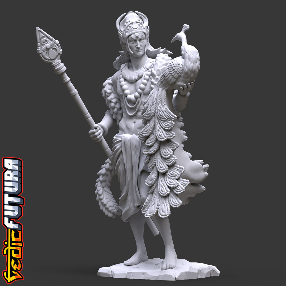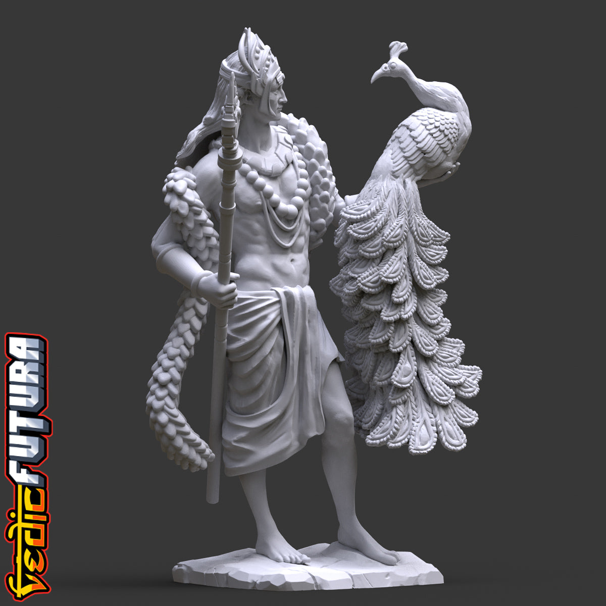 Model Description: A beautiful remix of the classical David as the Indian god of War Skanda aka Murugan. Shown here with his beloved peacock Paravani and clutching his fearsome spear called the Vel.