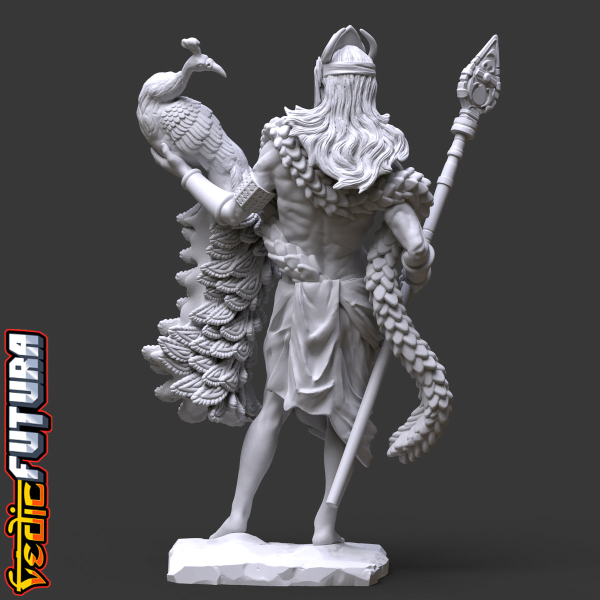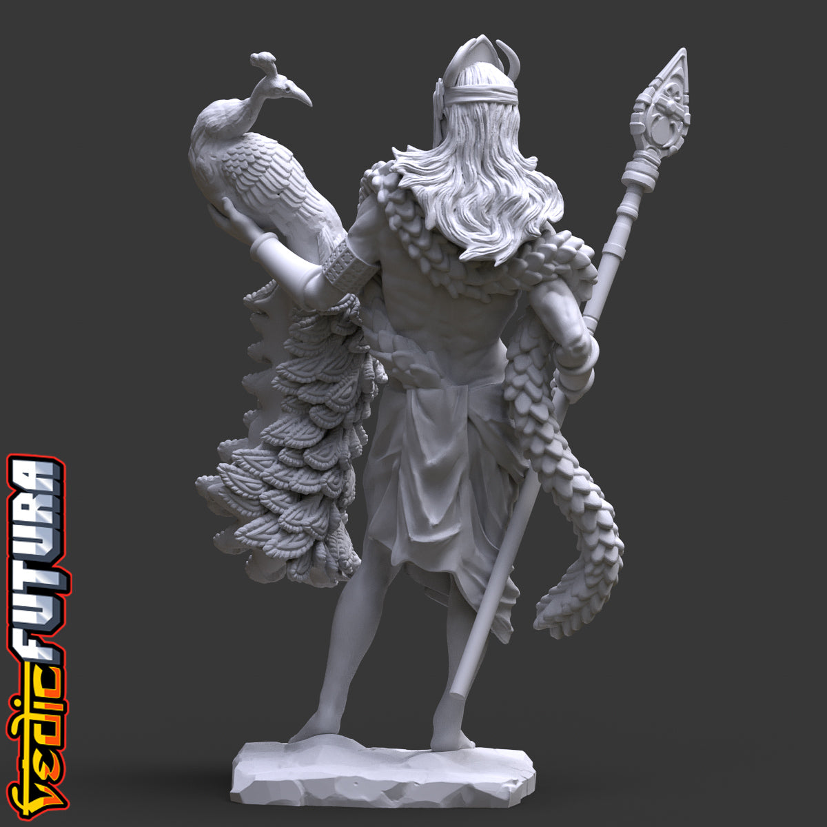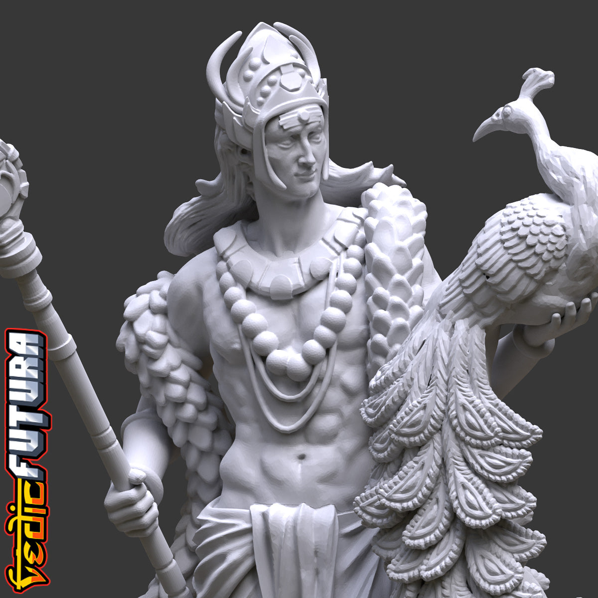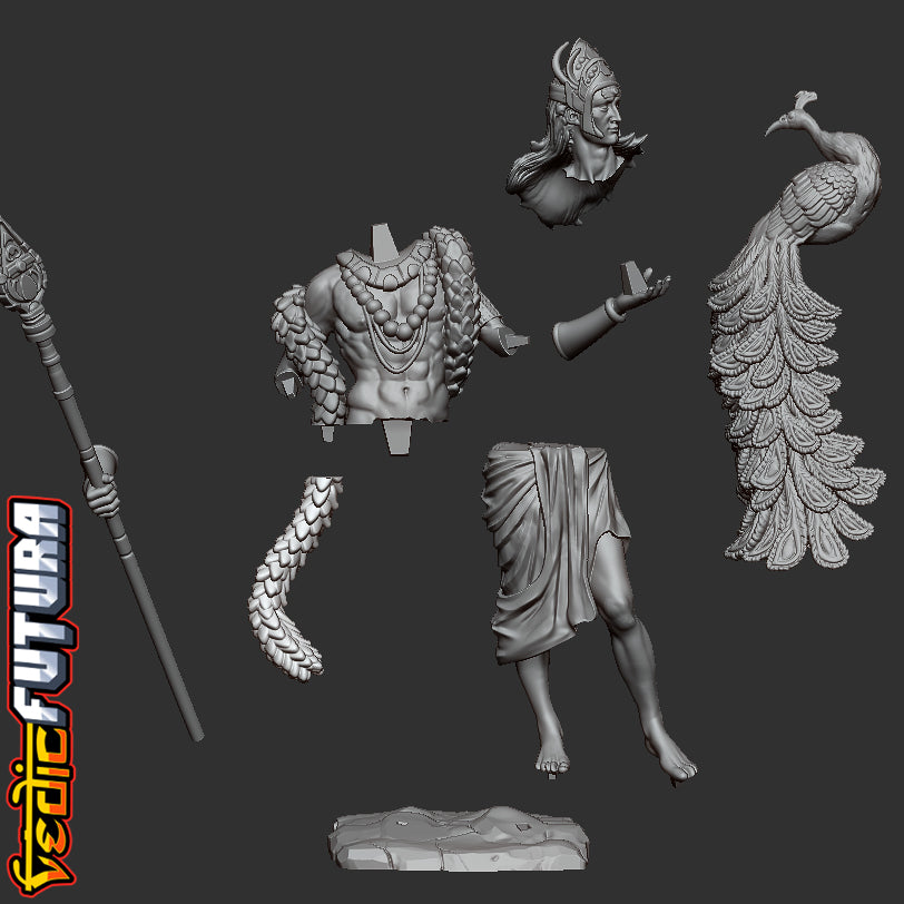 Model Description: A beautiful remix of the classical David as the Indian god of War Skanda aka Murugan. Shown here with his beloved peacock Paravani and clutching his fearsome spear called the Vel.