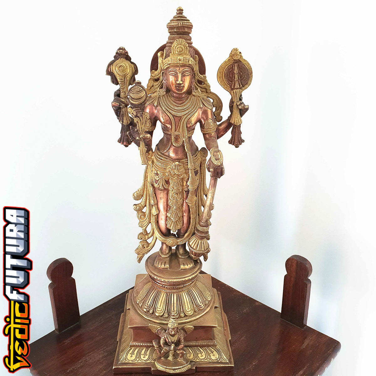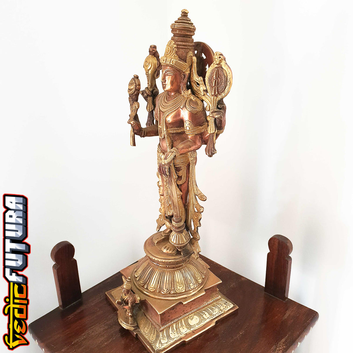 Vishnu the Preserver with Garuda (eagle) - Chola bronze style